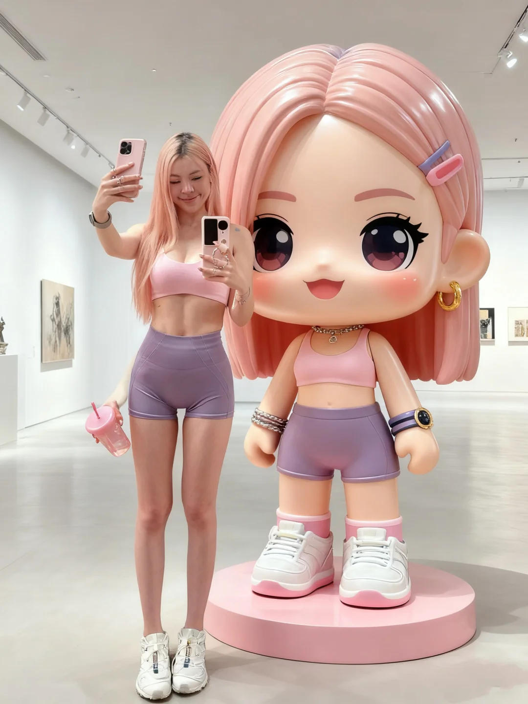 太可爱了吧!健身女孩儿也拥有了自己的手办展览~~[派对R] 五颜六色outfit✖️8🌈 💡超简单教程: 🫘💼➡️上传一张自己的全身照 ➡️输入文字zhi令➡️生成~