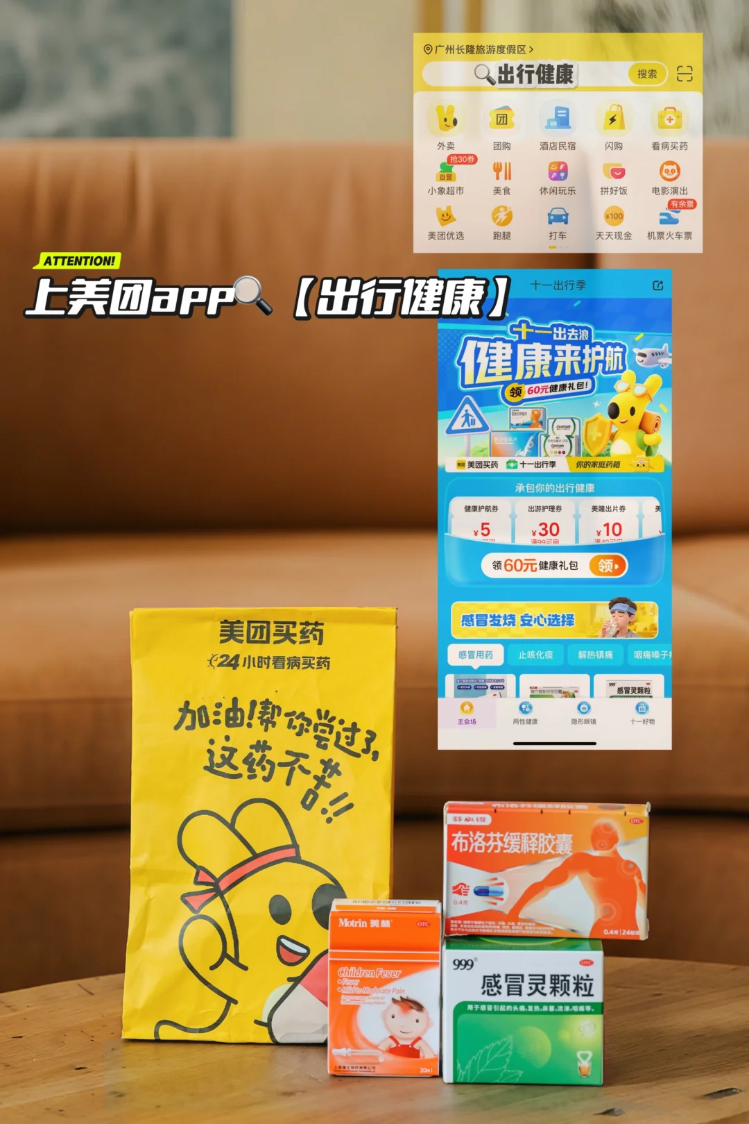 现在去美团app🔍“出行健康”,还可以领取健康礼包🎁