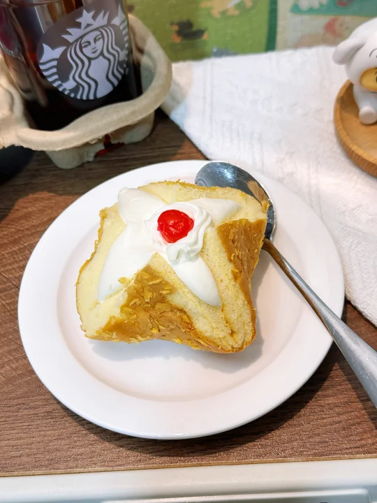 先吃奶油小方!切开的瞬间 动物奶油混着淡淡的甜香,不是那种齁甜。蛋糕体软到像在吃云朵,轻轻一捏就能挤出奶油,每一口都裹满内馅,幸福感爆棚!