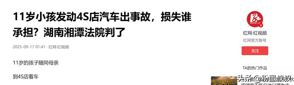 代价太大了!湖南湘潭,一女子带11岁儿子去4S店看车,结果和销售说话时,孩子竟在一辆展车里,并启动了车辆,导致车辆出现了损伤,事后4S店向女子索赔38916元,可她却接受不了,无奈双方闹上法院,而法院这样判了! 湖南湘潭有位妈妈,最近被看车的事儿搞得焦头烂额,本来是想给家里挑辆新车,改善改善生活,就带着 11 岁的儿子去了 4S 店,没成想就跟销售聊了会儿天的功夫,孩子竟偷偷溜进一辆电动展车里,还把车给启动了! “哐当” 一声,车子直接撞上了旁边的玻璃幕墙,车身刮花了不说玻璃也碎了一地,4S 店后来一算损失,直接跟这位妈妈说要赔 38916 块,这数字一出来妈妈当场就懵了,怎么也接受不了:“我就是带孩子来看个车,怎么就要赔这么多?” 双方吵来吵去没结果,最后只能闹上法院,可判决下来,才让所有人都明白,一个小小的疏忽代价能这么大。 其实事儿发生的时候,这位妈妈也挺冤枉的,她跟销售站在展车旁边,一边看配置表一边聊价格,注意力全在 “哪款车性价比高”“能不能优惠” 上,没太留意儿子的动静。 那孩子正是好奇心重的时候,看着展车崭新的内饰,就忍不住拉开车门坐了进去,谁知道 4S 店的工作人员图省事,把感应钥匙直接留在了车里,而且也没给车辆开启 “展车模式”,这种模式下车子就算有钥匙,也只能通电看内饰,没法真的启动。 可这是辆电动车,启动的时候安安静静的,没有一点声音,孩子在驾驶室里瞎摸索,不知怎么就按到了启动键,脚一碰到踏板,车子 “噌” 地就冲了出去,直接撞在了玻璃幕墙上。 等妈妈和销售听到响声跑过去,才发现车子已经撞坏了,孩子吓得脸色发白,站在旁边不敢说话,4S 店的人也急了,新车还没卖出去就被撞了,肯定得要赔偿,核算了车身修复费、玻璃更换费,加起来就是 38916 块,全让这位妈妈承担。 可妈妈觉得委屈:“你们店里没管好钥匙,也没做好安全措施,凭什么让我一个人赔钱?”4S 店这边却觉得:“孩子是你带来的,你没看好当然该你负责,” 两边各执一词,谁也不肯让步,最后只能请法院来评理。 法院调取了 4S 店的监控,也询问了当时在场的人,最后给出的判决让双方都冷静了下来,4S 店承担 70% 的责任,这位妈妈承担 30% 的责任,也就是说妈妈要赔偿 38916 块的 30%,差不多 11675 块,剩下的由 4S 店自己承担。 法官说4S 店作为专业的汽车销售场所,本该做好安全管理,把感应钥匙留在车里,没开启展车模式,这是主动给危险留了口子,相当于 “把打火机放在小孩能摸到的地方”,本身就存在很大的安全隐患,所以得负主要责任,而这位妈妈作为监护人,在 4S 店这种到处是精密车辆的地方,没看好 11 岁的孩子,让孩子脱离了自己的视线,导致意外发生也有监护失职的责任,所以得承担一部分赔偿。 拿到判决书的时候,妈妈叹了口气虽然还是觉得心疼,但也知道这事儿自己确实有疏忽,本来是想给家里添新车,结果没买成,反倒先赔了一万多,这对普通家庭来说,可不是小数目,想想都觉得代价太大了。 4S 店那边也没占到便宜,剩下的两万多损失得自己承担,还因为这事儿影响了口碑,后来也赶紧改了规定,所有展车必须开启展车模式,钥匙统一由工作人员保管再也不敢图省事了。 网上知道这事儿的人,也都觉得 “这代价真不小”,有人说:“4S 店太粗心了,钥匙怎么能随便放车里?” 也有人说:“家长带娃出门,尤其是在这种有危险的地方,真得时刻盯着不然出点事后悔都来不及。” 不管是商家还是家长,安全这根弦都不能松,商家图省事没做好安全措施,就得承担损失,家长没看好孩子一时疏忽,也得付出真金白银的代价,像这位妈妈这样,本来是件高兴的事儿,最后却赔了钱,还惹了一肚子气,说到底就是因为双方都没把 “安全” 当回事,最后才让小小的意外,变成了代价巨大的麻烦。 (信息来源:红网——11岁小孩发动4S店汽车出事故,损失谁承担?湖南湘潭法院判了)