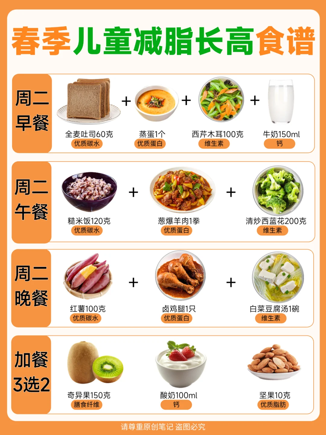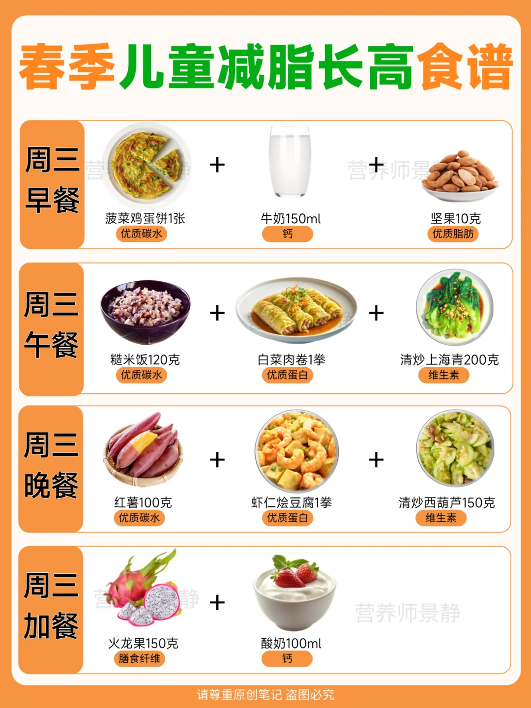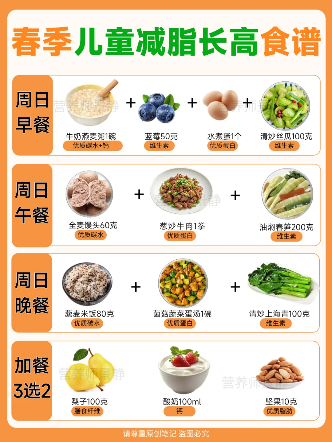 ✅儿童春季减脂长高一周食谱+饮食攻略