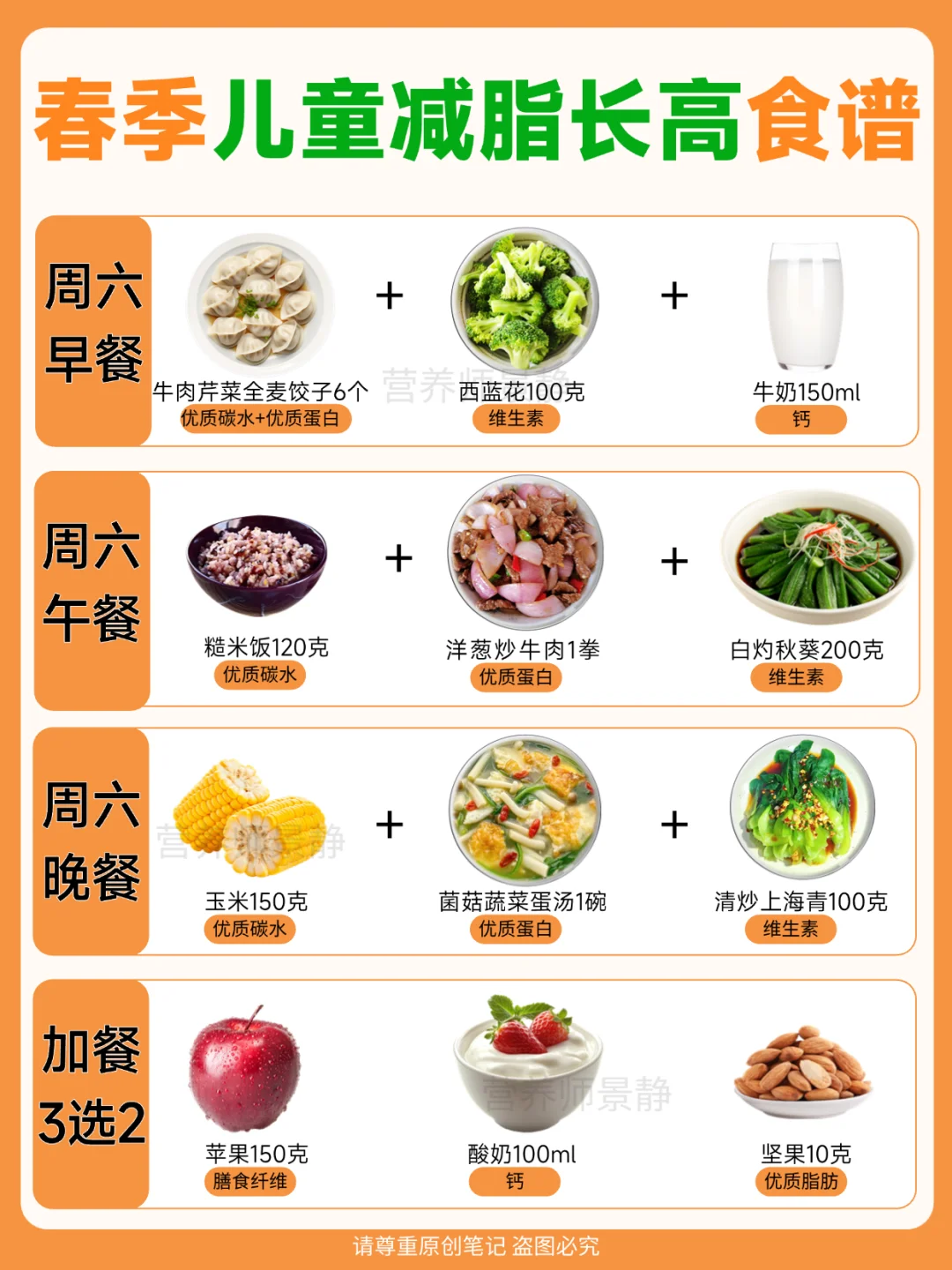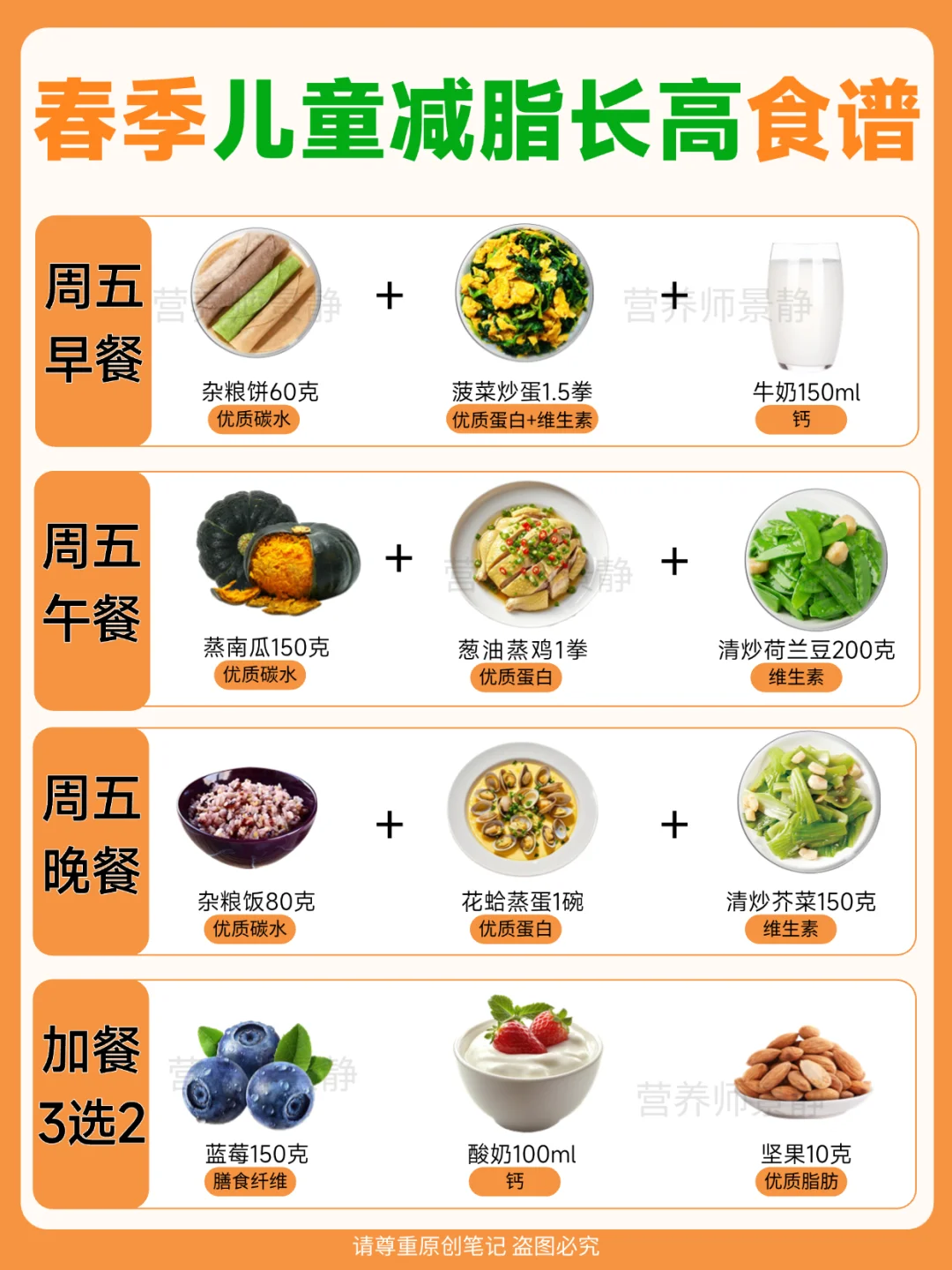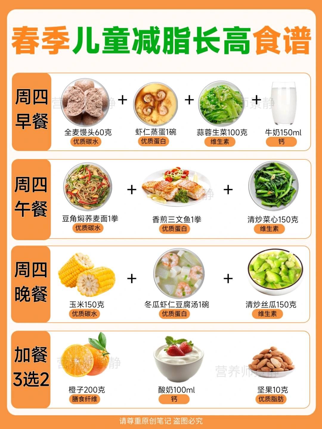 ✅儿童春季减脂长高一周食谱+饮食攻略