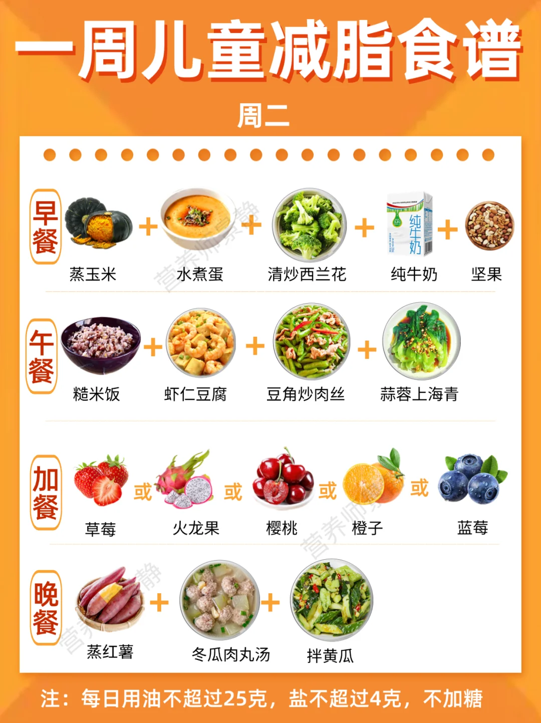 儿童减脂|一周食谱|吃饱才能快乐瘦下来