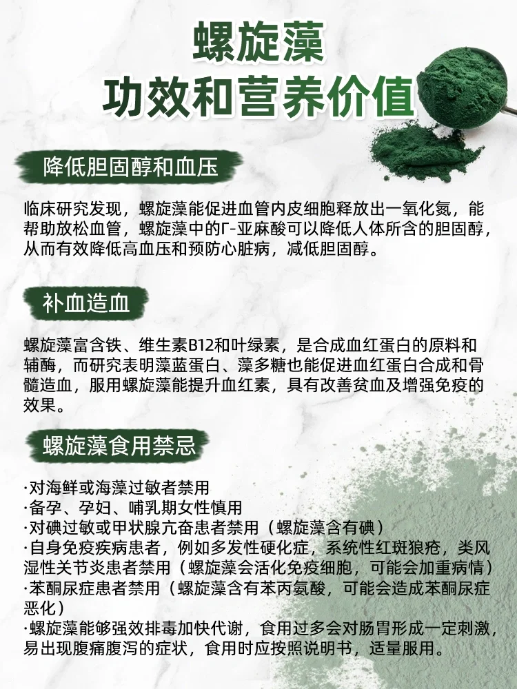 3️⃣对碘过敏或甲状腺亢奋患者禁用(螺旋藻含有碘)
