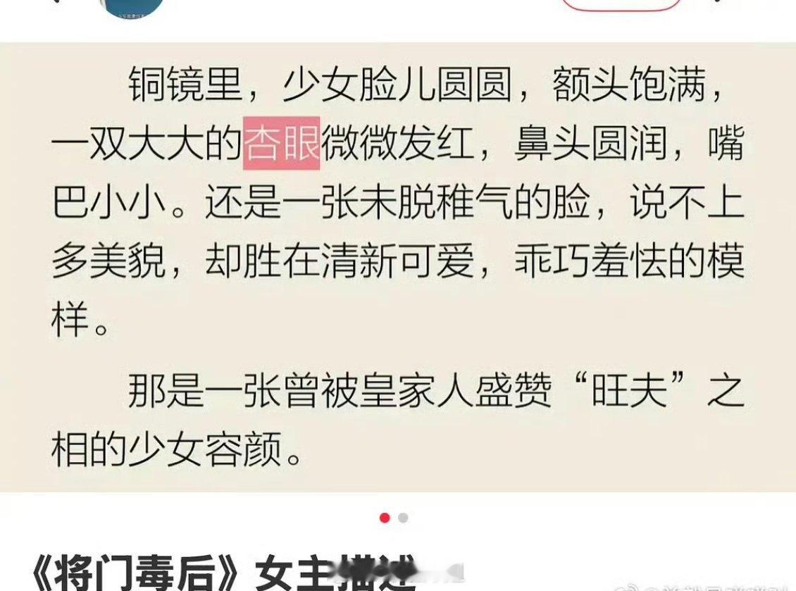 《将门毒后》男女主外貌描述 大家觉得内娱谁比较贴脸