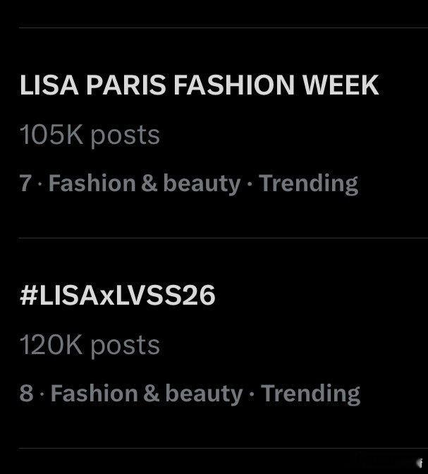 Lisa出席巴黎时装周Louis Vuitton 26春夏女装大秀相关词条“LISA PARIS FASHION WEEK”、“LISAXSS26”已登上全球世趋第7、8位。