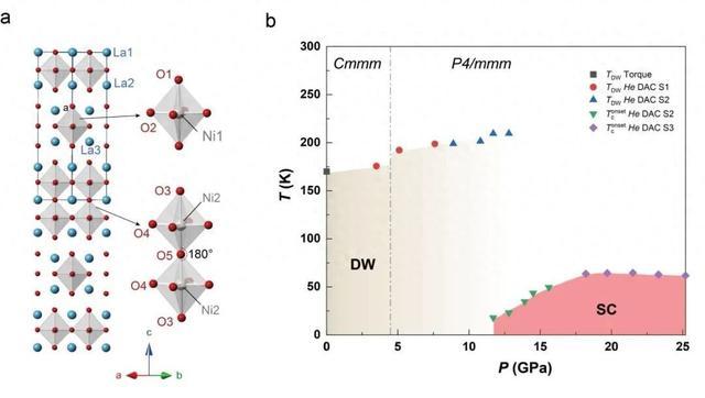 此前研究表明,随着压力增加,NiO6八面体的畸变和倾斜被抑制,约在15GPa时发生从正交结构到四方结构的高压诱导结构转变,超导电性随之出现。因此,普遍认为具有四方结构的(RNiO3)n是产生超导电性的先决条件。