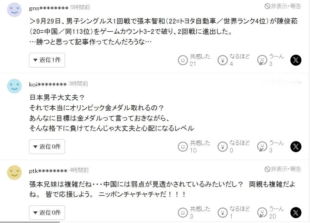 日本媒体和日本网友,也开始指责张本智和兄妹和他们的父母,说他们兄妹表现不稳定,特
