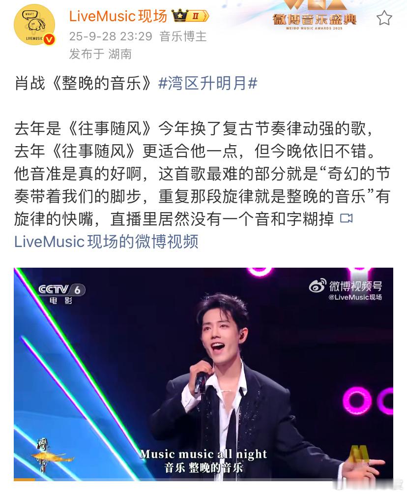 肖战整晚的音乐播放量肖战湾区升明月演唱的《整晚的音乐》火爆出圈🔥几大官媒在分流