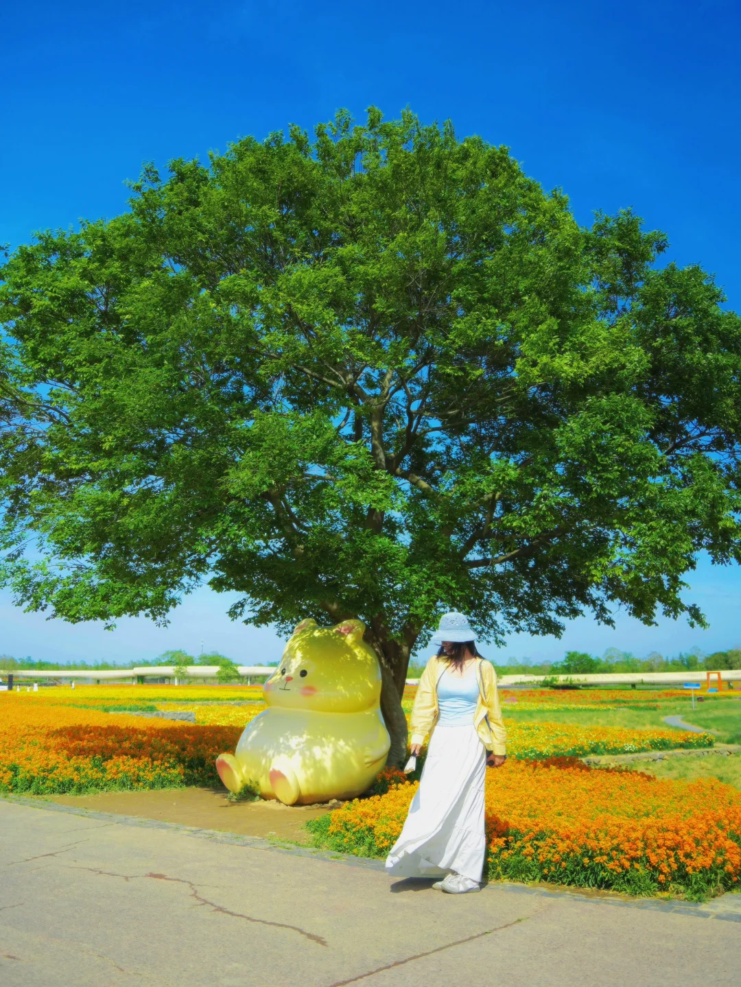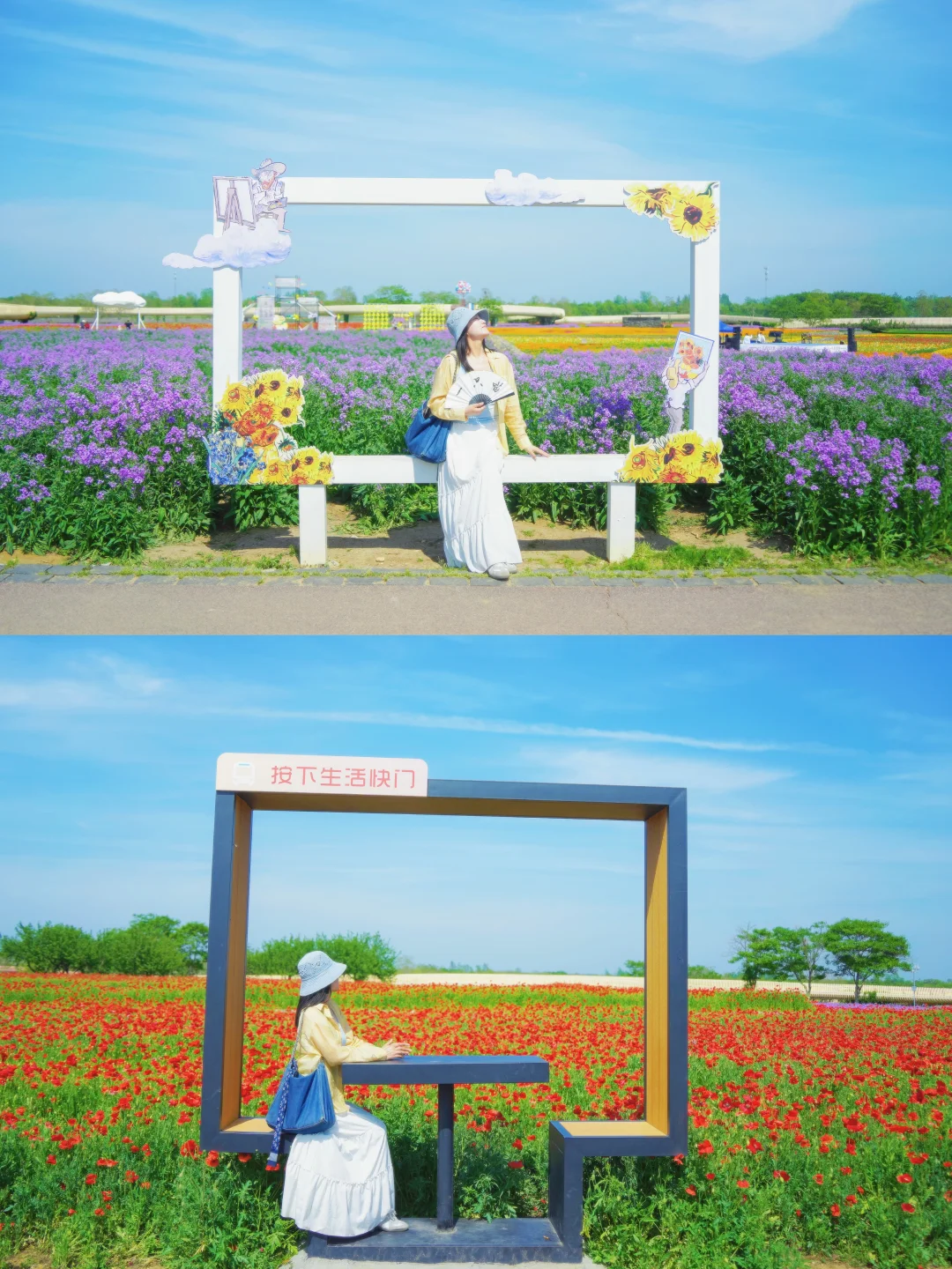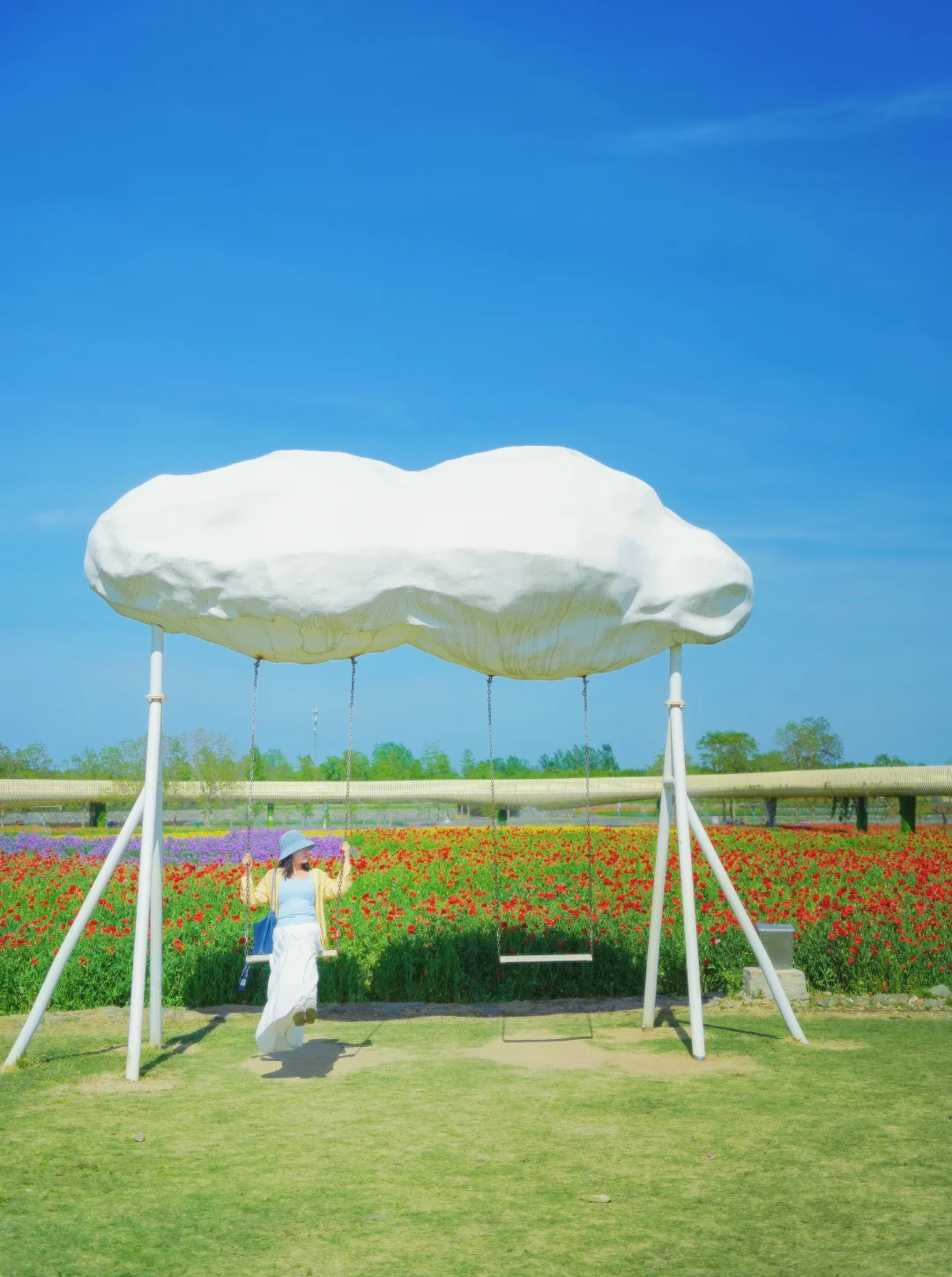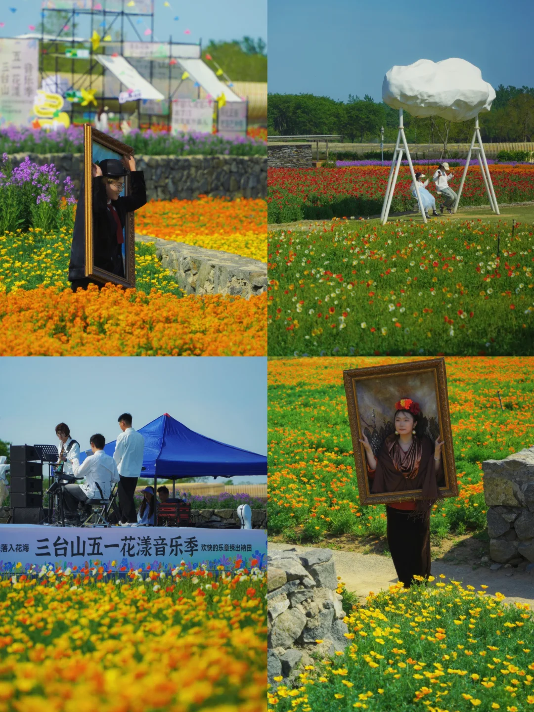这是我本次最惊喜的地方!2千亩超级大花海,这个季节波斯菊、虞美人开的正艳~包出片的!还有很多漂亮的装置来合影,还有油画展巡游,真宛如梵高的油画!微风徐徐,坐在花海里听着民谣,沉醉在花海音乐节里🎶