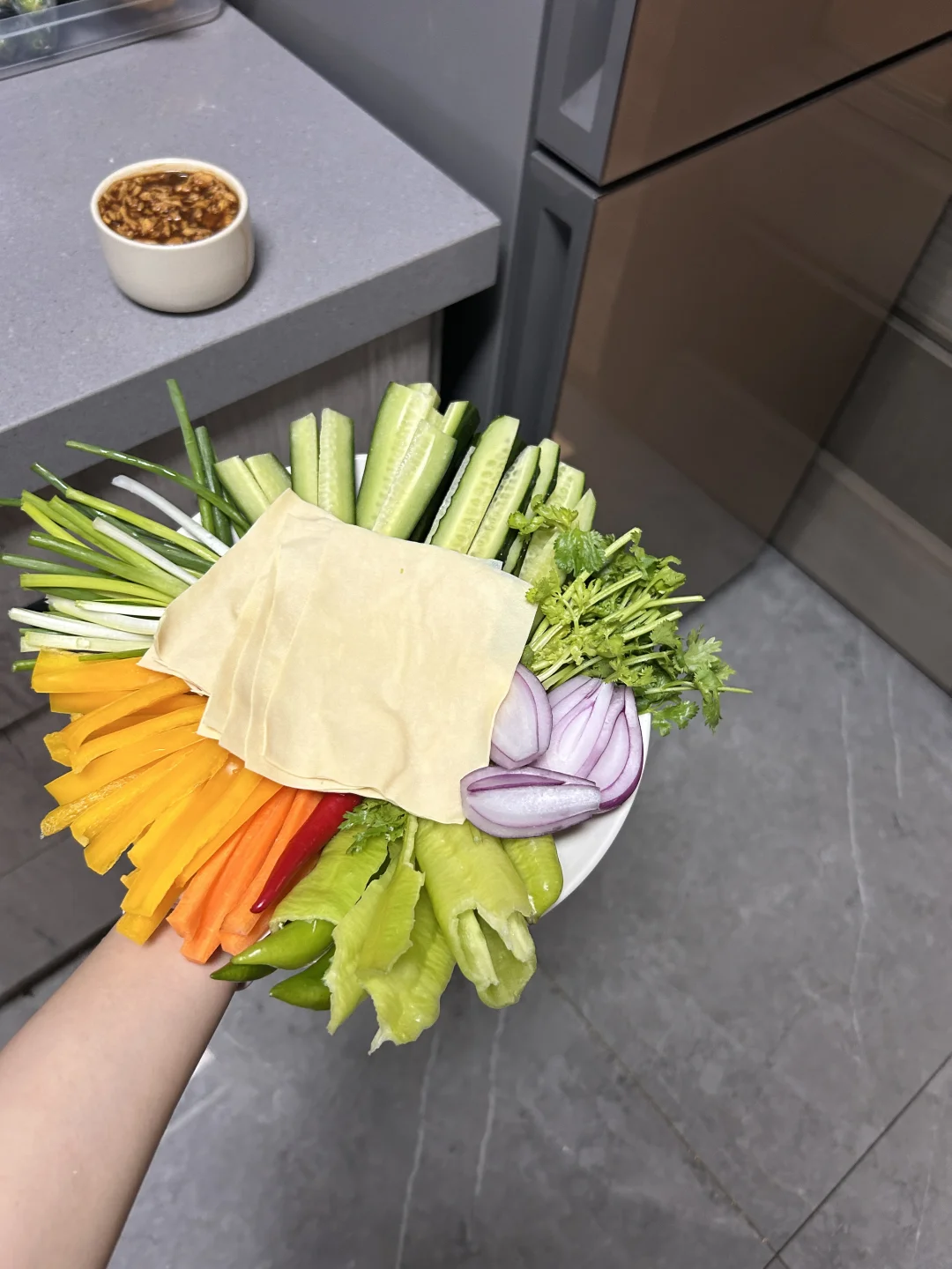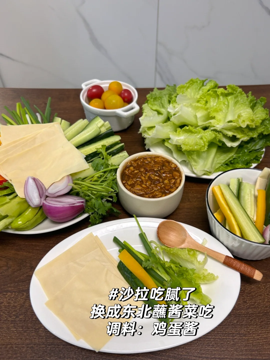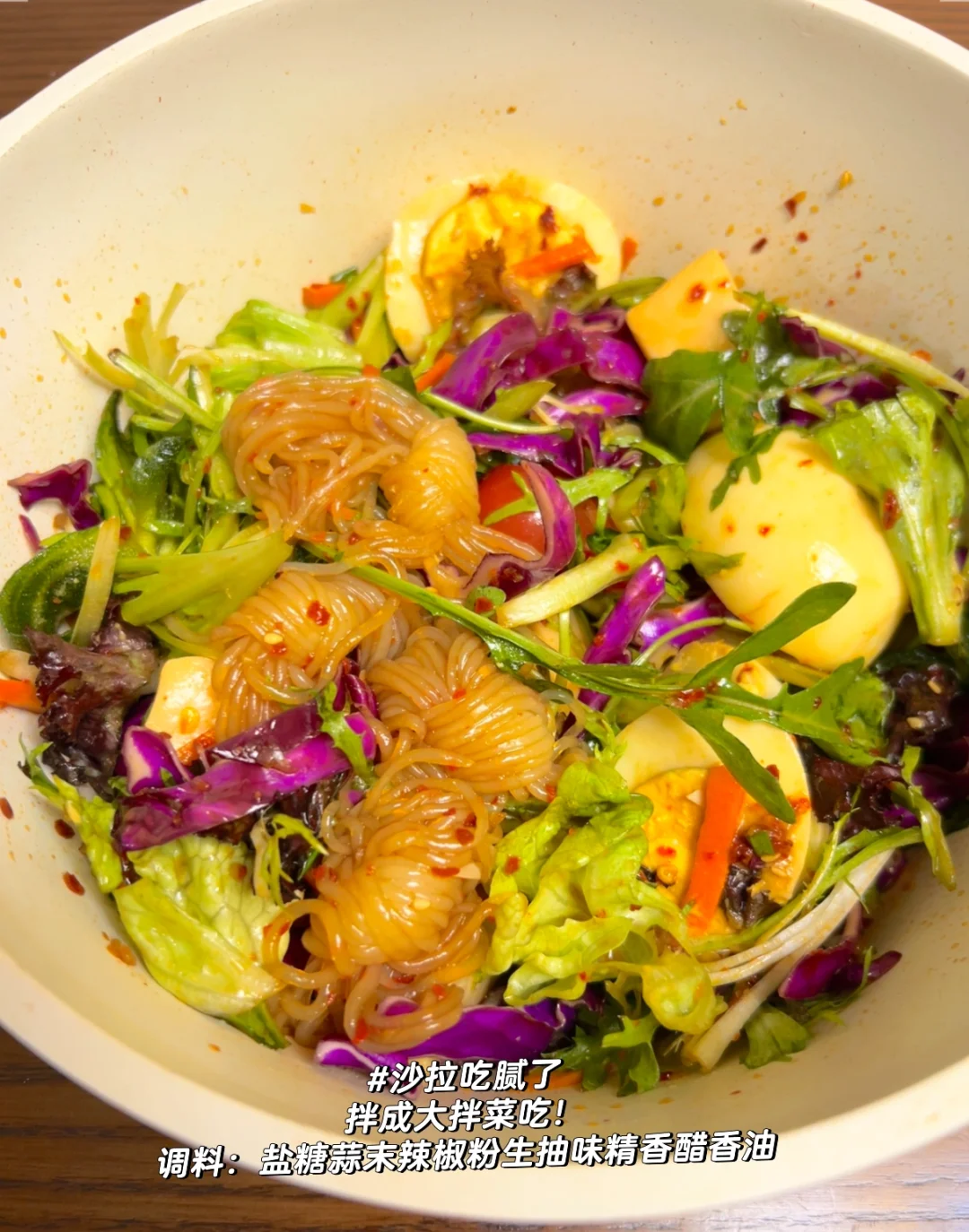 体验到了穷鬼版的蔬菜自由 跟闺蜜一起网上拼单的蔬菜,跟超市相比真的好便宜 所以不知不觉就买多了[笑哭R] 接下来要猛猛吃蔬菜了!!!多吃菜真的很掉秤! 顺便给大家几种吃蔬菜灵感~[派对R][派对R] 1️⃣蔬菜沙拉+油醋汁(橄榄油1勺生抽1勺苹果醋1勺蜂蜜1勺黑胡椒适量一起搅匀) 2️⃣蔬菜沙拉+培煎芝麻口味沙拉汁 3️⃣蔬菜沙拉+凉拌菜料汁(盐糖蒜末辣椒粉生抽味精香醋香油) 4️⃣东北蘸酱菜+鸡蛋酱 5️⃣夹三明治/麦芬/生菜饭包等 6️⃣看剧看电视无聊时打发时间当零食吃 不知道大家都怎么消耗沙拉菜 姐妹们互相交换一下减脂餐灵感~