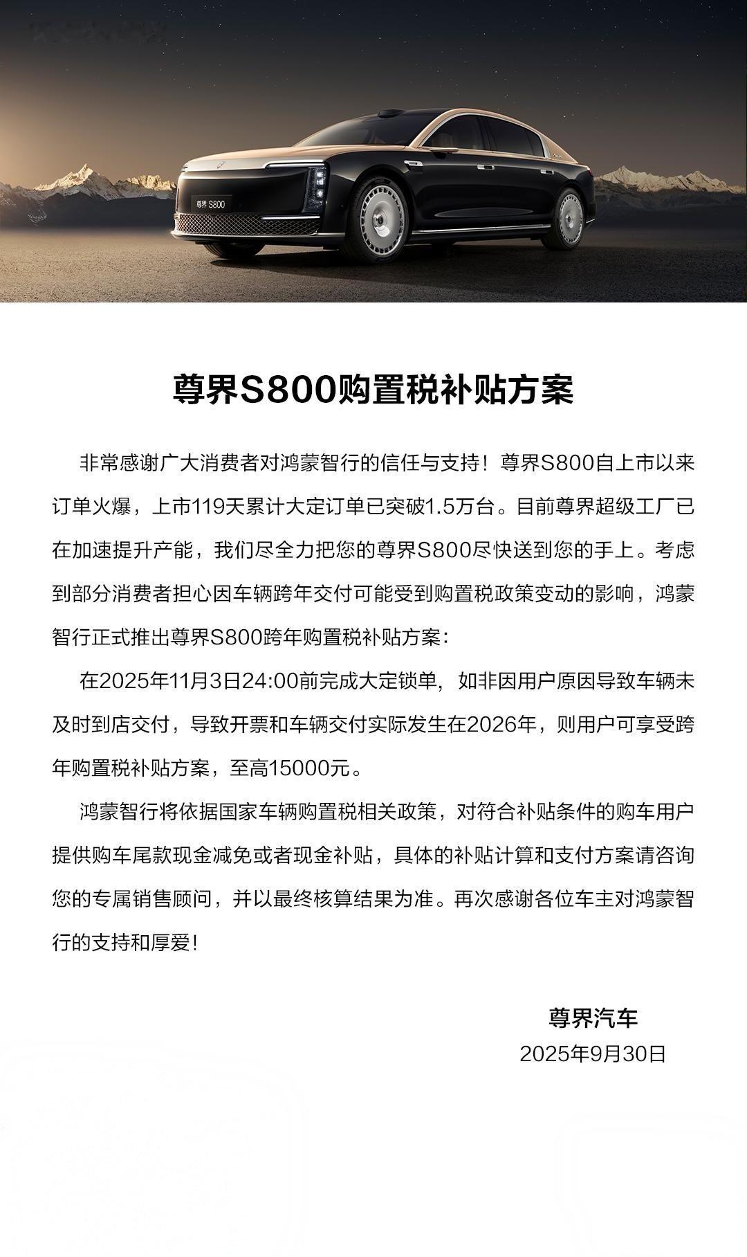 想买尊界S800的可以放心下大定了,购置税补贴妥了,我相信你们的实力[doge]