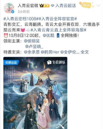 10月初上线的三部95生古装大剧 10月初这个档期还不错!追哪部 陈哲远10.2一笑随歌 侯明昊10.8入青云 李昀锐10.9宴遇永安
