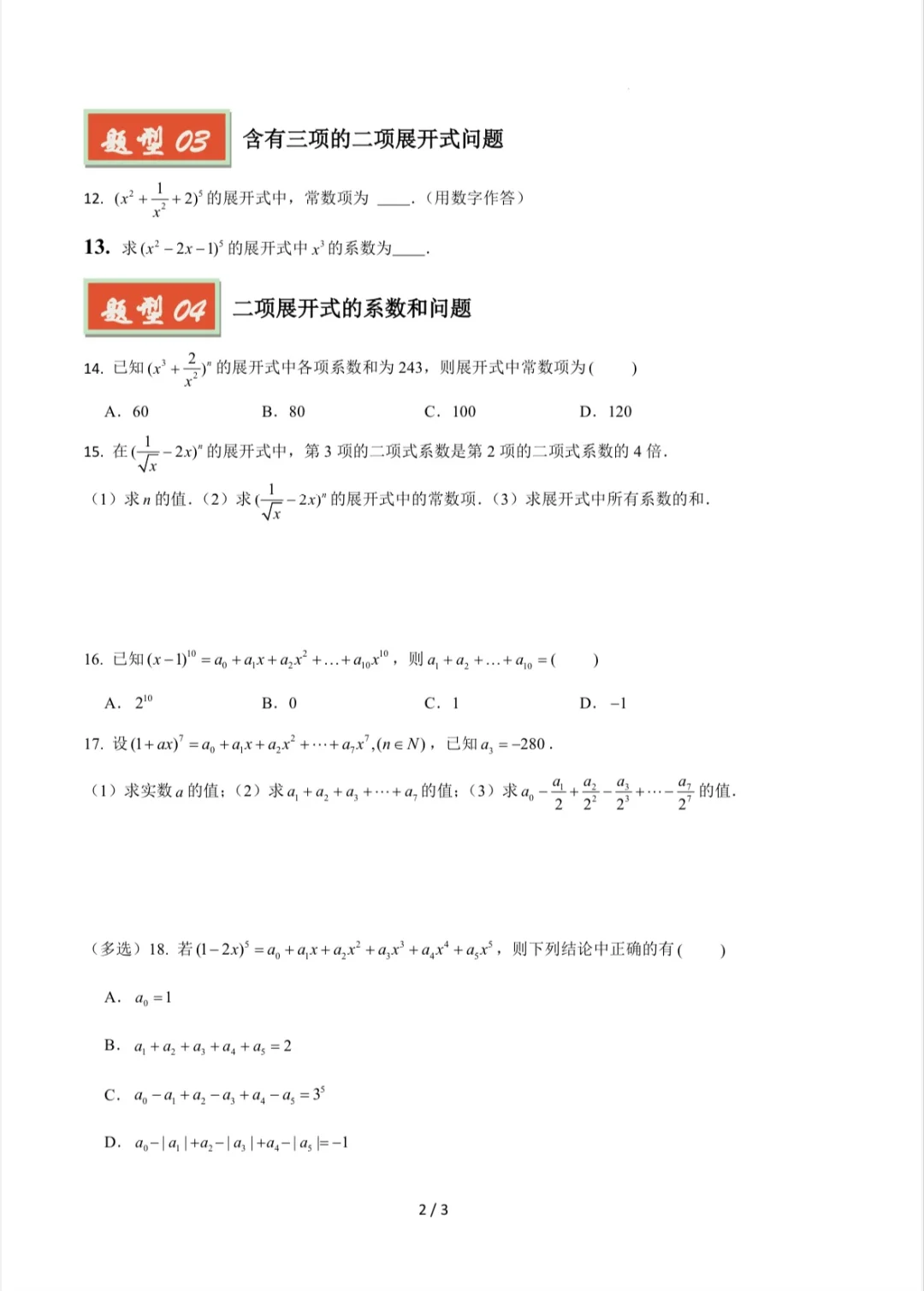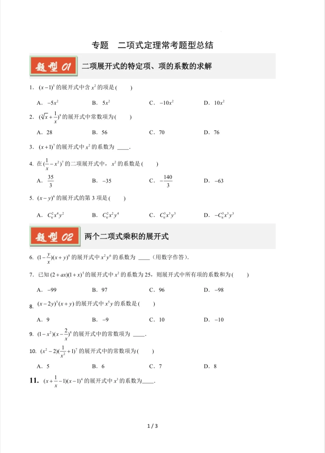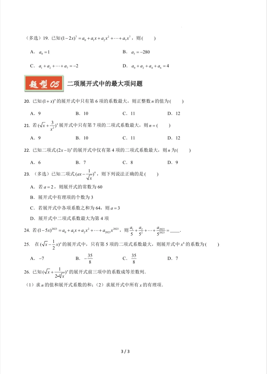 📚二项式定理必考题型!刷完试卷轻松拿捏💯