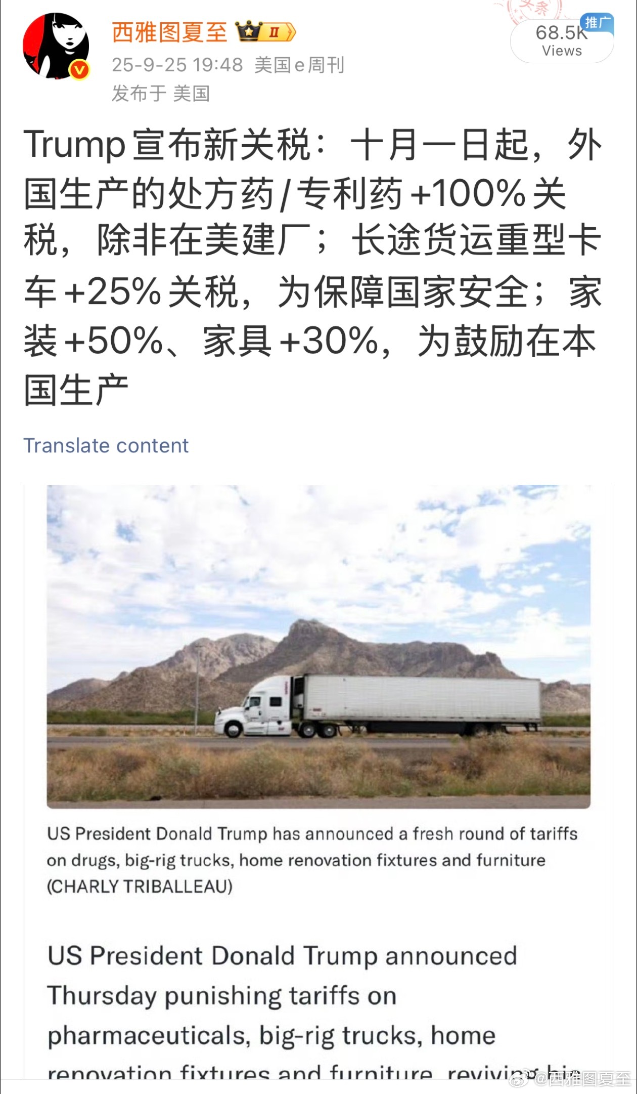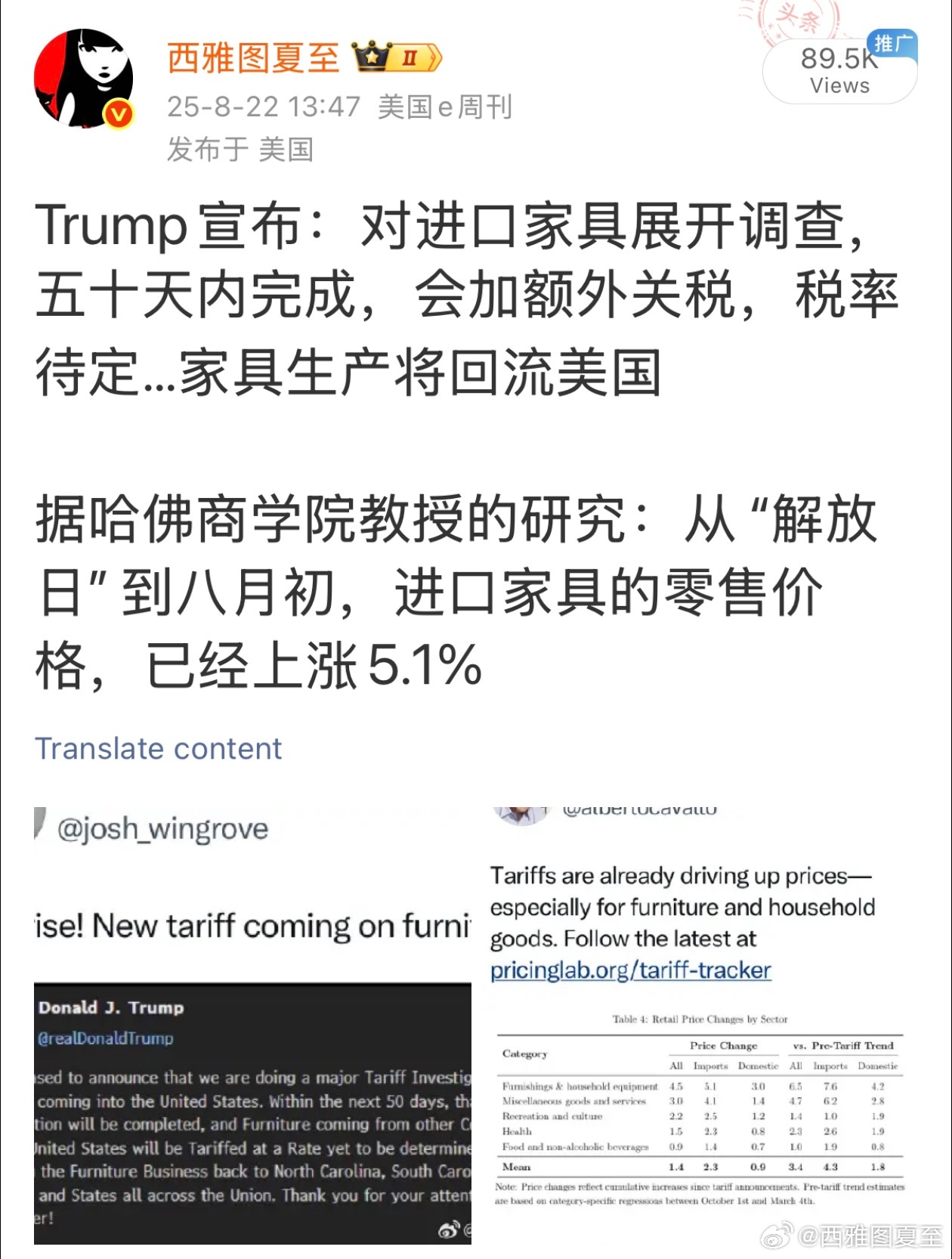 Trump宣布新关税:进口木材+10%,进口家具、橱柜产品+25%,10月14日生效