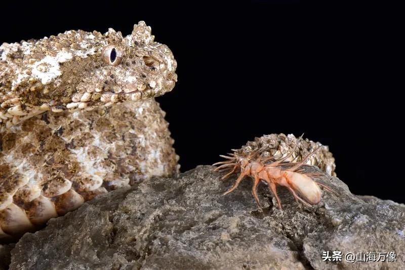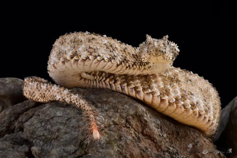 尾巴长着鬃毛,头上有角的蛇 可能谁都没有看到过。目前观察 到的自然界实体也就只有30条。 它们潜伏在伊朗西部,伊拉克东部 的山区。这种蛇最早是在20世纪 60年代在伊朗的扎格罗斯山脉 采集到的。当时生物学专家无法 确定种物,只认为是畸形。直到 2006年,才正式记录,定名为 “蜘蛛眼镜蛇”。 它们的主要食物就是鸟类,利用 尾巴上的鬃毛拟态在岩石上“爬动” 的蜘蛛,诱惑鸟类们来捕食,咬住后 放出毒液,使鸟类瞬间丧失行动能力。 成了其终极拟态的受害者。至于头 上的角,至今也没有正确的说法, 很可能也是一种拟态模式。 虽然是毒蛇,目前并没有咬过人的 事例。 这些形态各异的生物早就存在于 地球,人类发现的过晚罢了, 人类用自身的经验想彻底解明 生物学,就如同鸟儿眼中的 长着鬃毛的蛇尾巴:假象重重。 意念上的误区。
