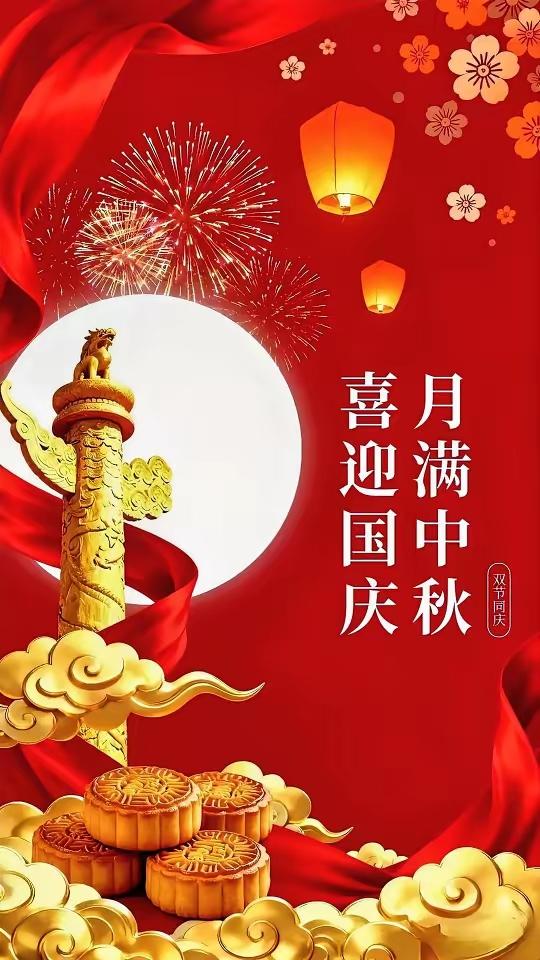国庆至,月满又中秋,家国同庆!今天,我们为伟大祖国76岁华诞庆生! 稻浪在江北的田埂间泛起金黄,渔火于江南的水波中轻轻摇晃;高原上格桑花与秋风共舞,城市里霓虹灯同月色相映。从南疆港口的繁忙汽笛,到北国林海的斑斓山色,这个秋天,丰收与团圆的故事在每寸土地上流淌。 七十六载山河远阔,每一程都有奋斗者笃行的足迹。当月饼的甜香飘满街巷,当五星红旗在晨光中猎猎飞扬,亿万颗心跳动着相同的节拍——愿祖国风调雨顺,万家安康,在时代的画卷上续写更壮丽的华章! 祖国的华诞 中秋明月照团圆