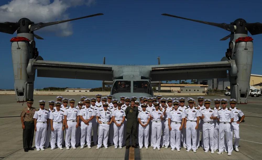 韩国人在中国面前“自尊心”非常强,但在美国面前“卑躬屈膝”,怒不敢言。 2025年9月26日,大韩民国(ROK)学员在夏威夷卡内奥赫湾海军陆战队空军基地的KC-130J超级大力士运输机,鱼鹰飞机前合影。此次访问让ROK学员全面了解了军事航空单位的运作方式,包括从地面战术到飞行操作的各项职责与任务。