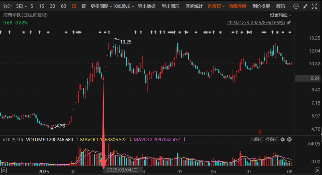从股价走势来看,以公告披露日3月4日为分界点(上图中箭头所示),披露前股价已大幅拉涨。从2月第一个交易日2月5日(此前为春节假期)到3月12日,海南华铁区间涨幅达138.58%。