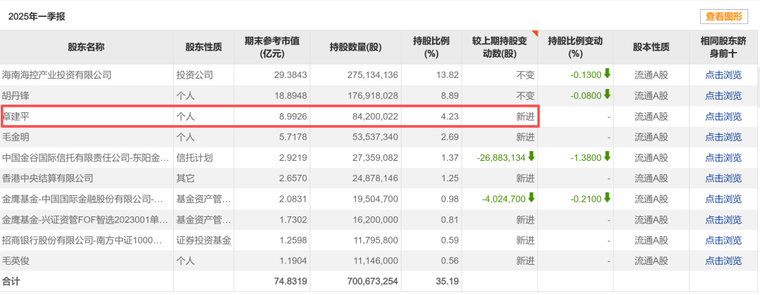记者还注意到,“牛散”章建平在海南华铁2025年一季报中新进十大股东榜,且一举成为第三大股东,持股比例达4.23%,持仓当季末参考市值约8.99亿元。