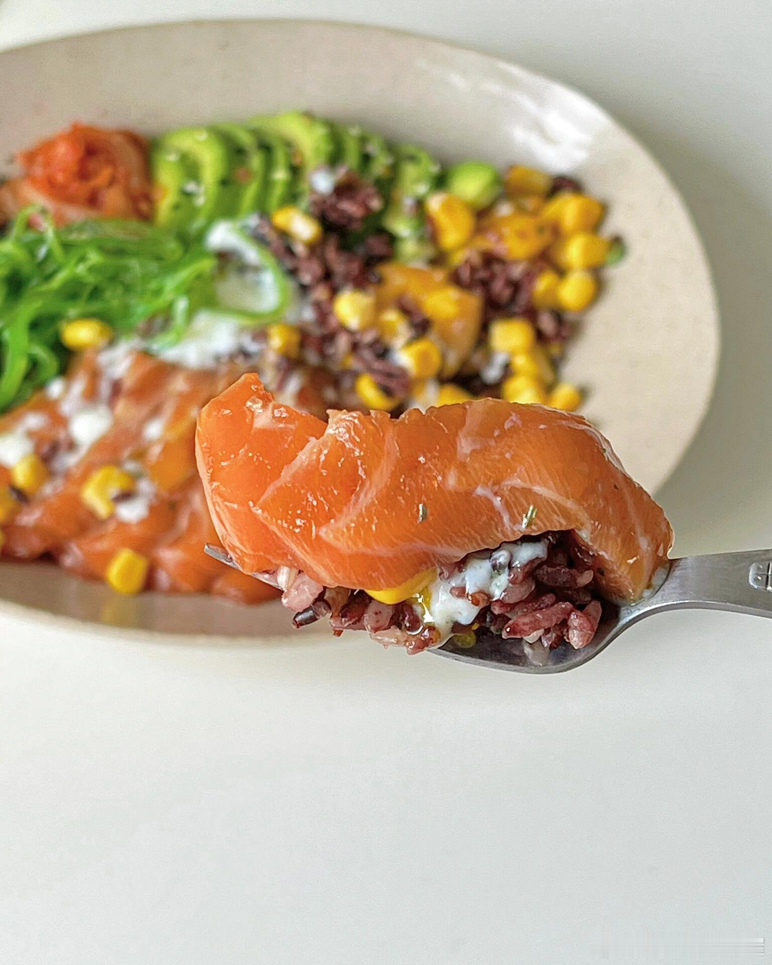 夏日轻食‼️低卡美味|三文鱼牛油果拌饭🥑·三文鱼和牛油果单吃就已经很美味了