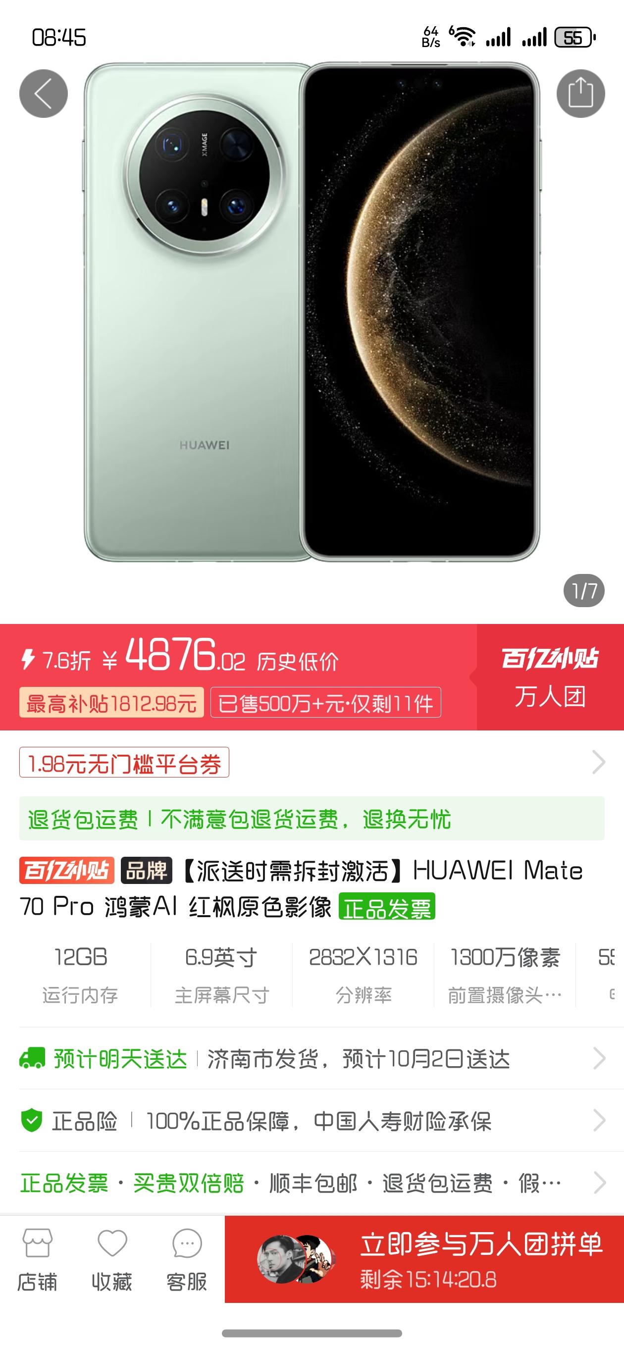 鸿蒙NEXT 国庆想要换手机的,这个时候购入非常具有超高性价比了,我看了下Mate70低到4346元,pro版本也来到了4876元,pro+低至6137,这3款里面还是pro最划算该有的都有了,可能也是mate80要来了,提前趁着国庆中秋清下仓位,不差钱的也可以等等mata80系列[呲牙]