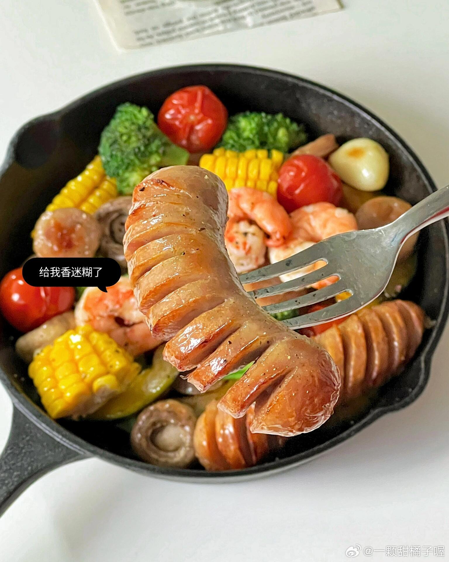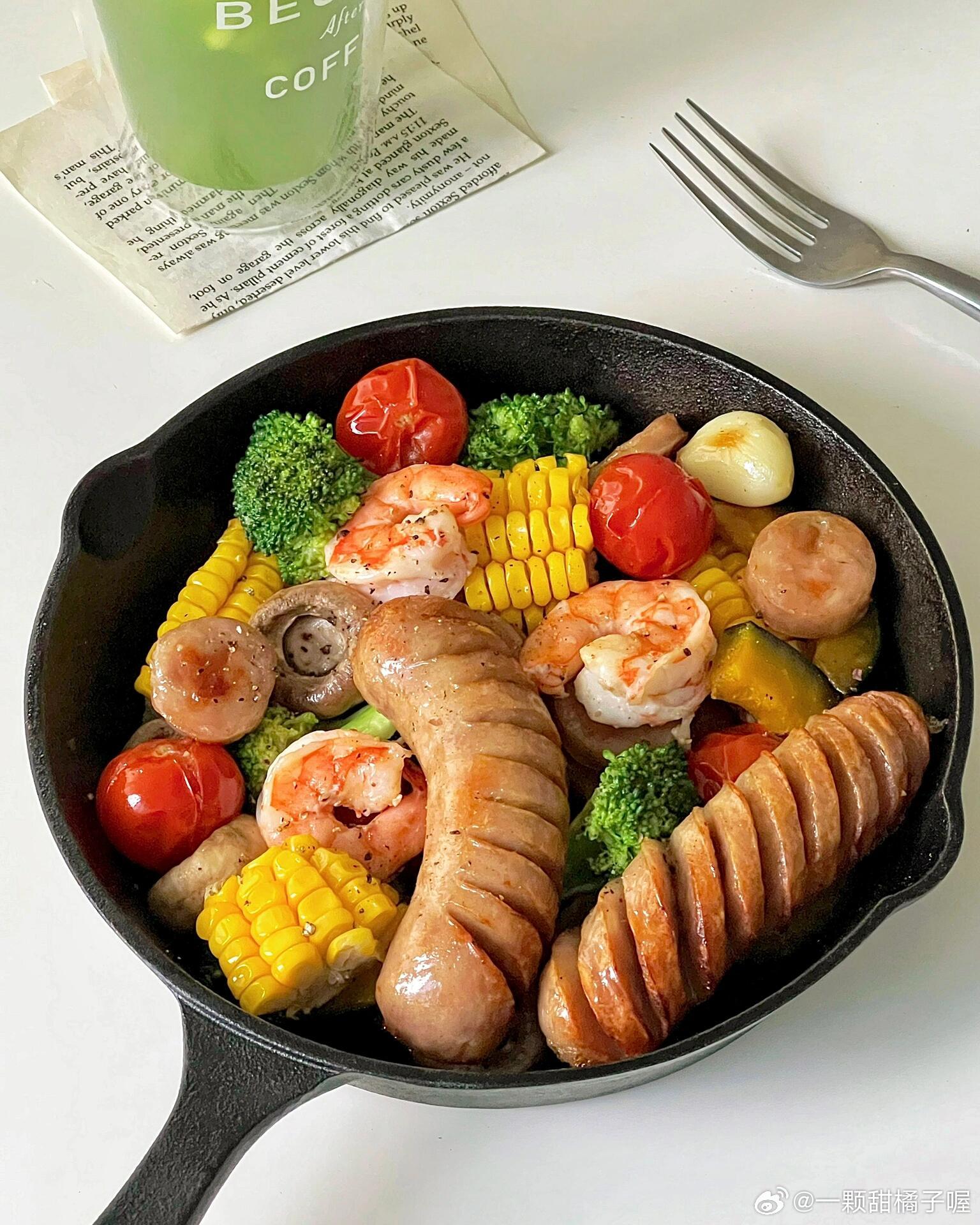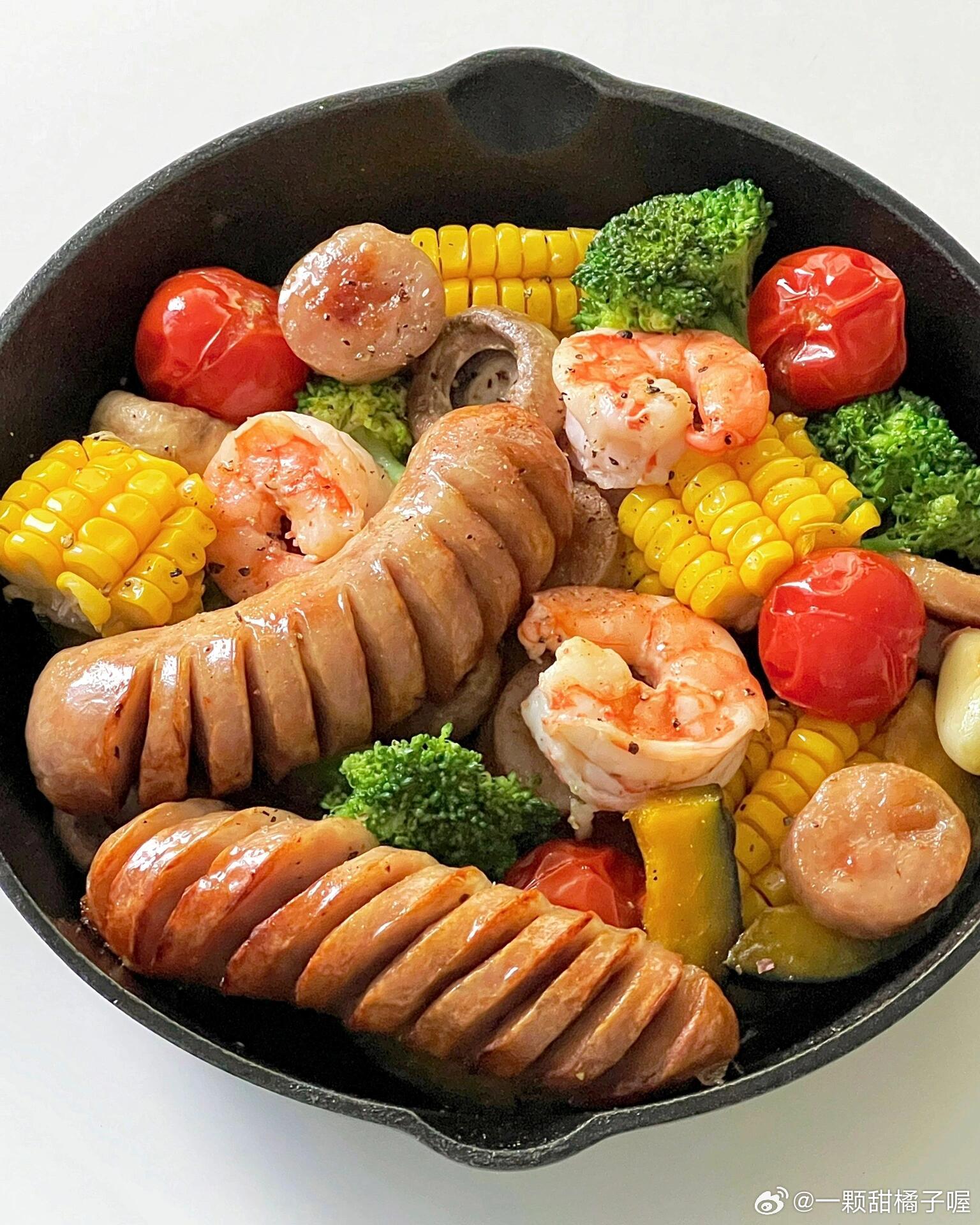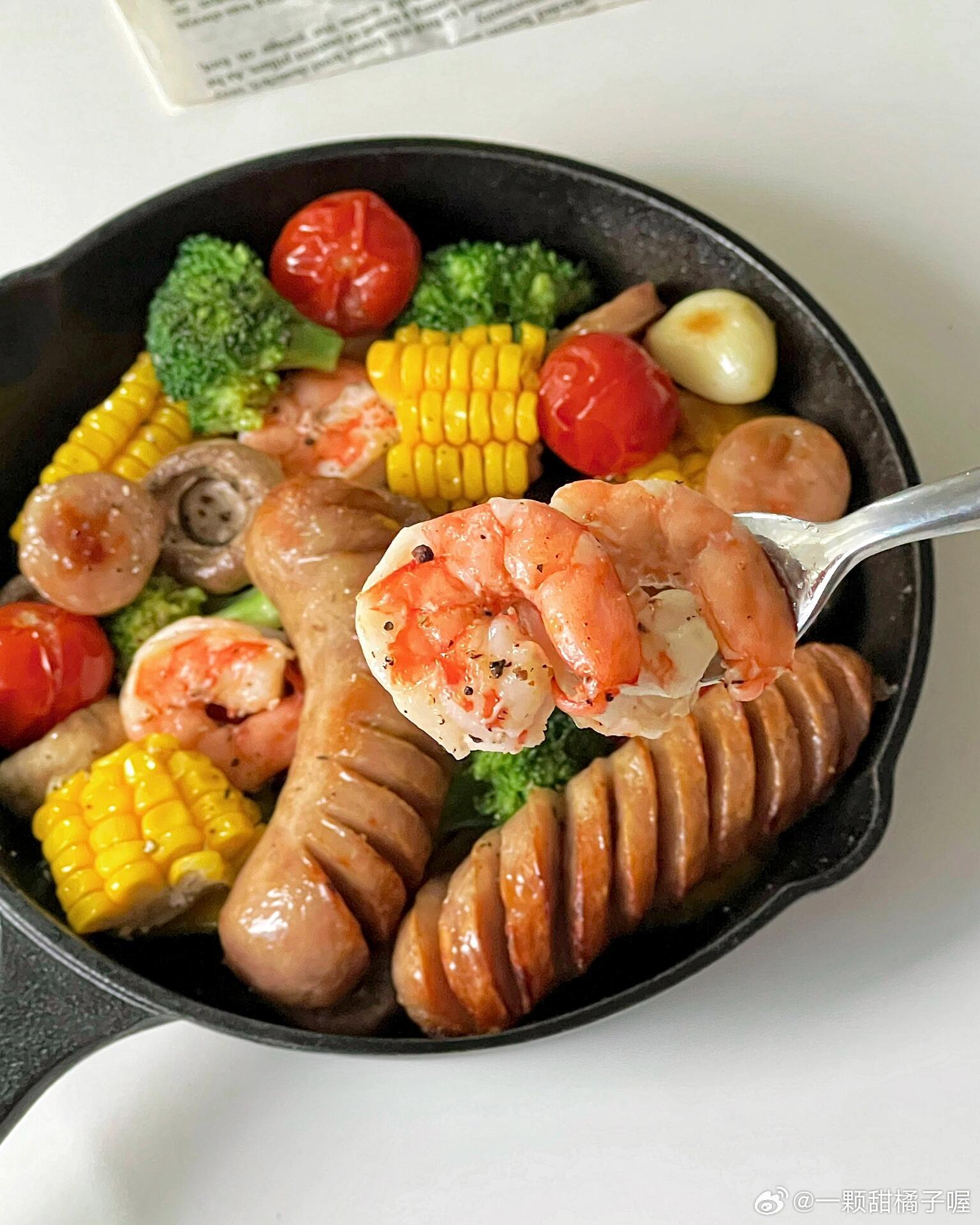 减脂期来一锅虾仁时蔬烤肠,荤素搭配,不要太满足❗️蛋白质维生素都有了,营养又饱腹!