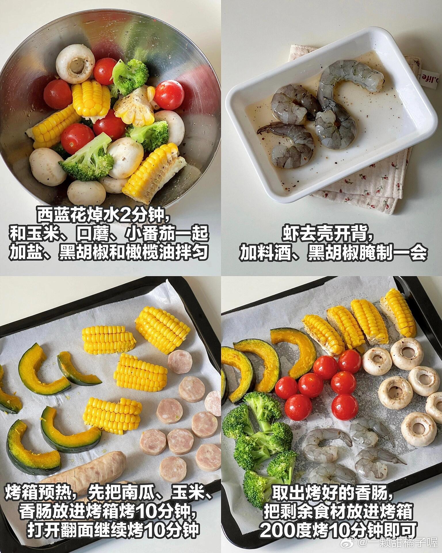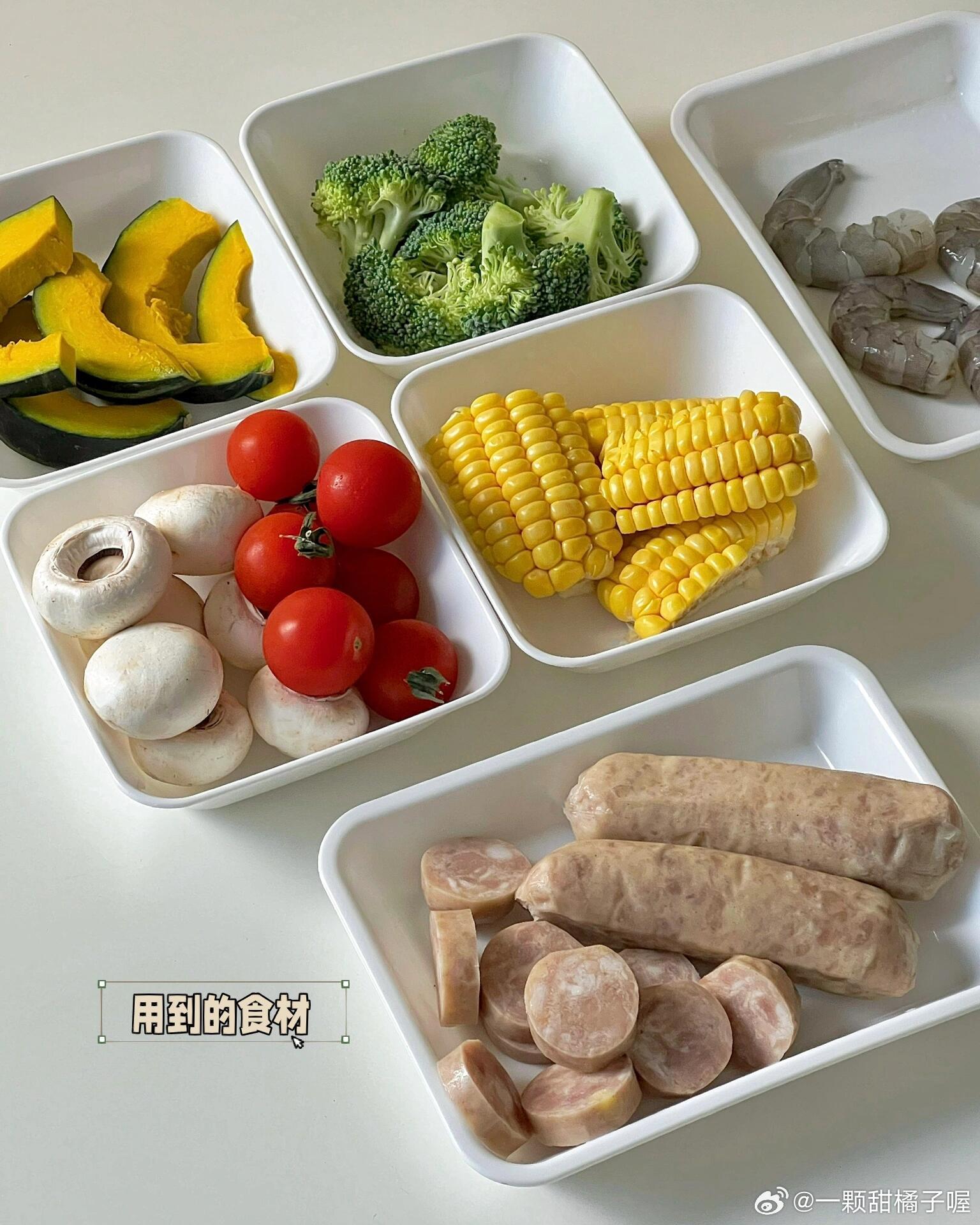 香肠、西兰花、玉米、贝贝南瓜、小番茄、口蘑、虾