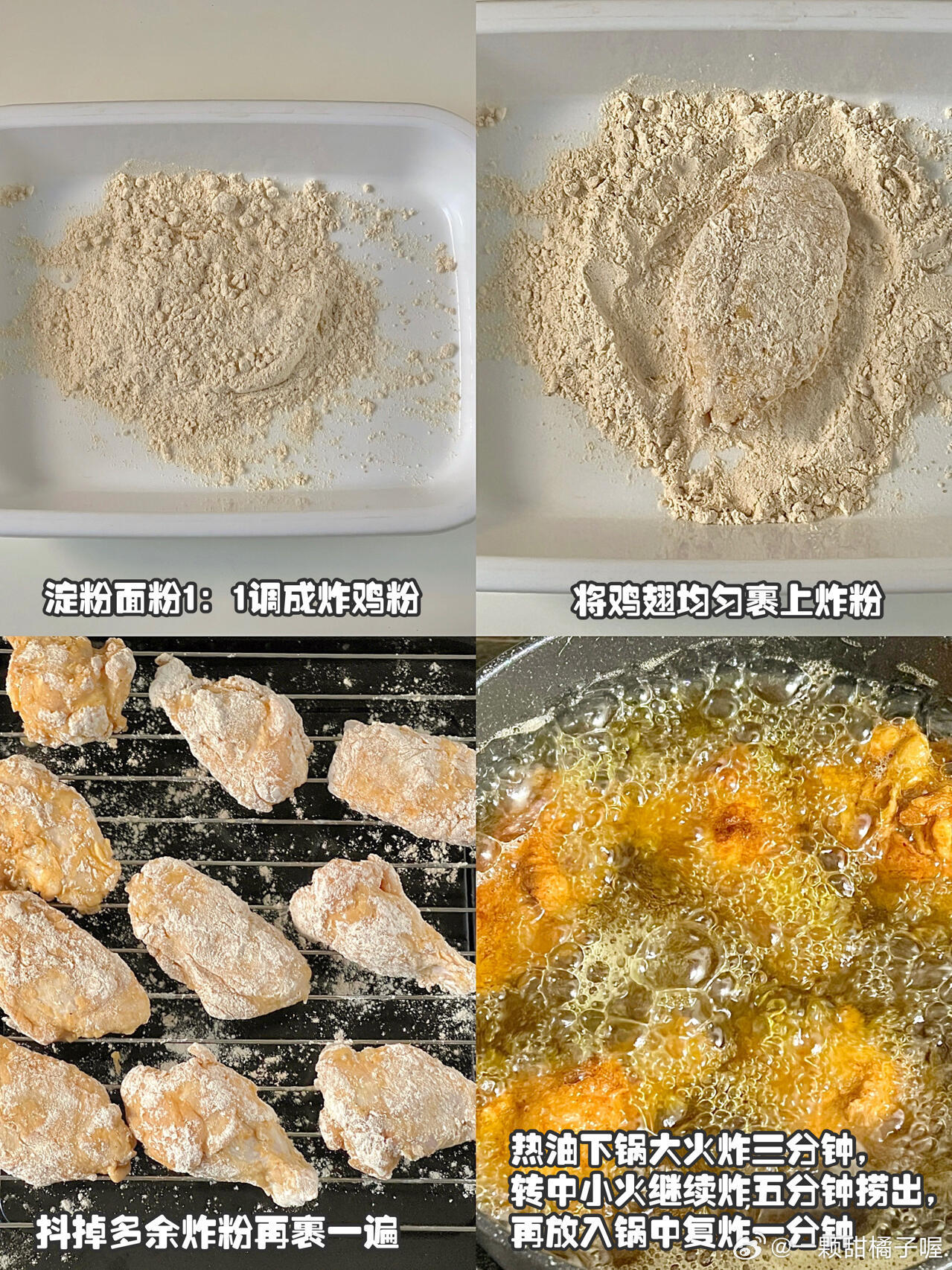 3️⃣鸡翅均匀裹上炸粉,抖掉多余炸粉,再裹一圈炸粉。