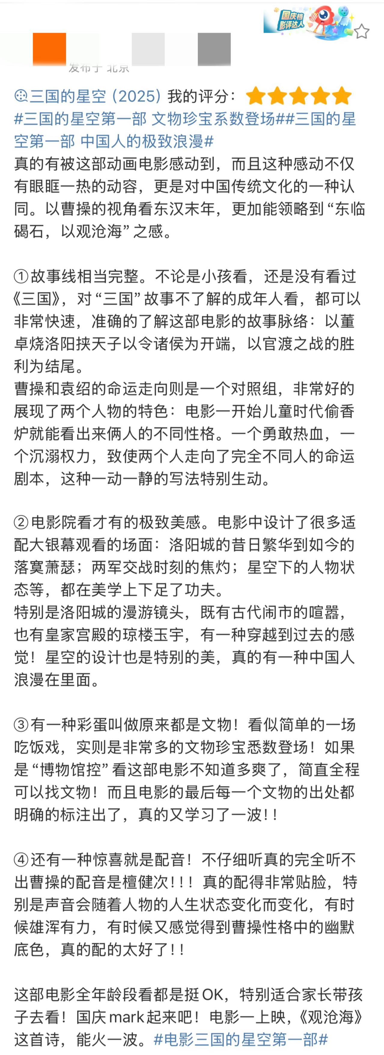 78岁的易中天正是闯的年纪 78岁的易中天老师那股闯劲儿,在《三国的星空》里展现得淋漓尽致!首映式上他主动揽责,护着后辈大胆创作。电影里处处是历史细节,从服饰到布景都超考究,不愧是文化盛宴! ​​​