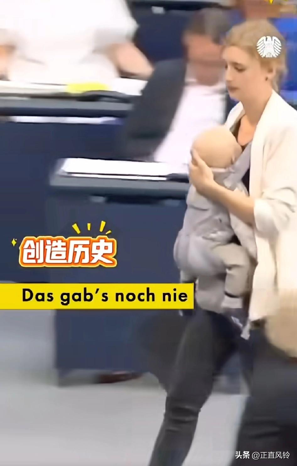德国女议员带娃上班,太酷了!突然想起那个为了工作错过女儿的成人礼而哭的泪流满面那个主任 在德国小娃娃是非常宝贵的,她带着宝宝去上班不但不会被嫌弃,还会变成团宠。这娃从小就见惯大场面,从小耳濡目染,夸张得很,马斯克也经常扛着他儿子到处跑,长大了会不会觉得进白宫就跟回家一样。 崽:刚才我妈说的很全面,既有理论的高度,又有实践的深度,下面,我就如何贯彻落实提4点要求……
