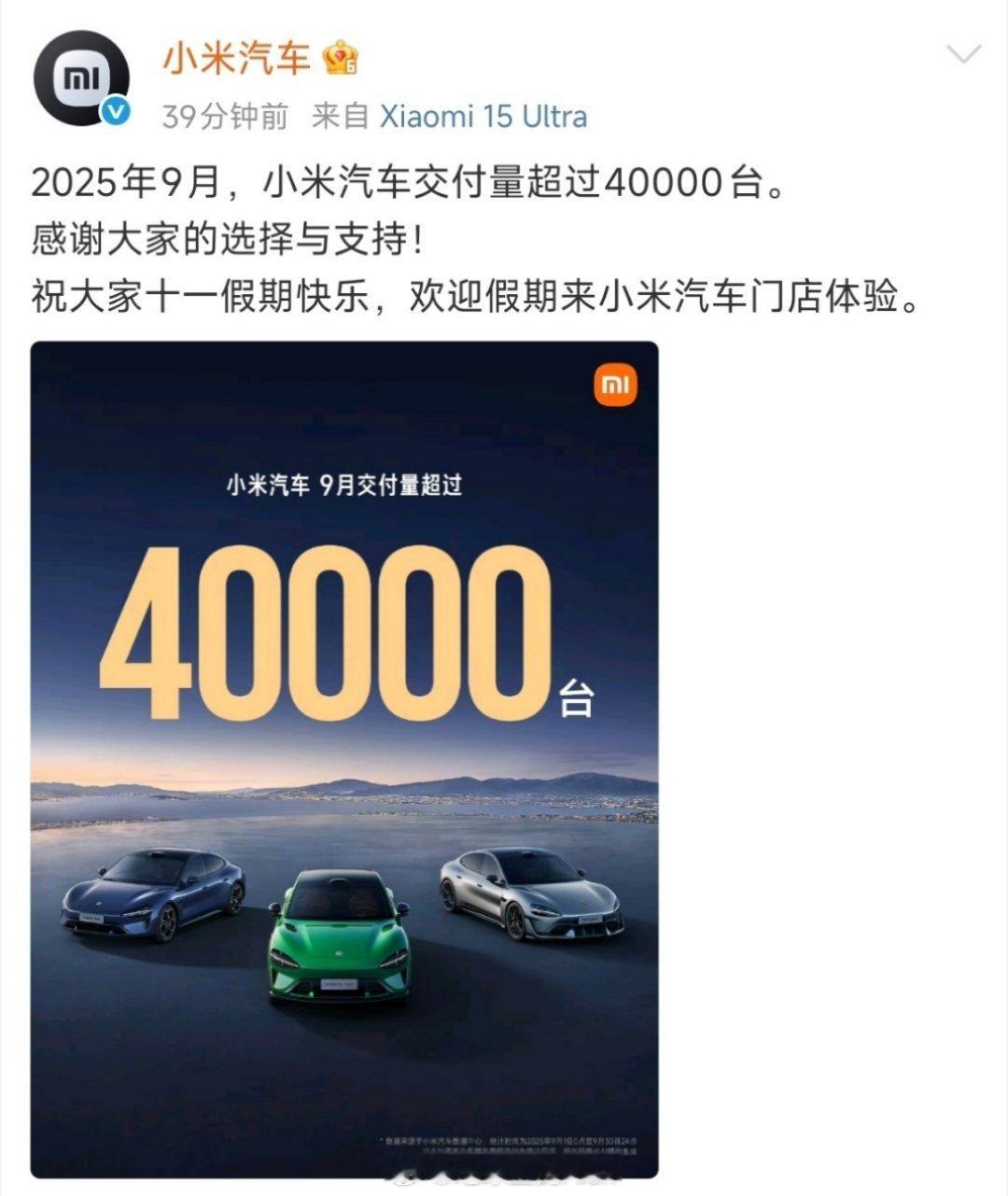 刚开车呢,刷微博发现,小米汽车终于突破3W台的交付,实现月交付4W台