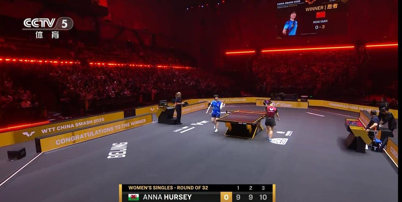 中国女乒姑娘蒯曼真是好样的!在刚刚结束的一场世乒联大满贯赛中国站女单第二轮中,蒯曼苦战三局最终以3:0击败威尔士选手赫西,成功晋级女单下一轮。 本场比赛,虽然蒯曼是大比分击败对手,但是三局比赛下来蒯曼赢得并不轻松,只不过蒯曼的关键球能力要远远强于对手。