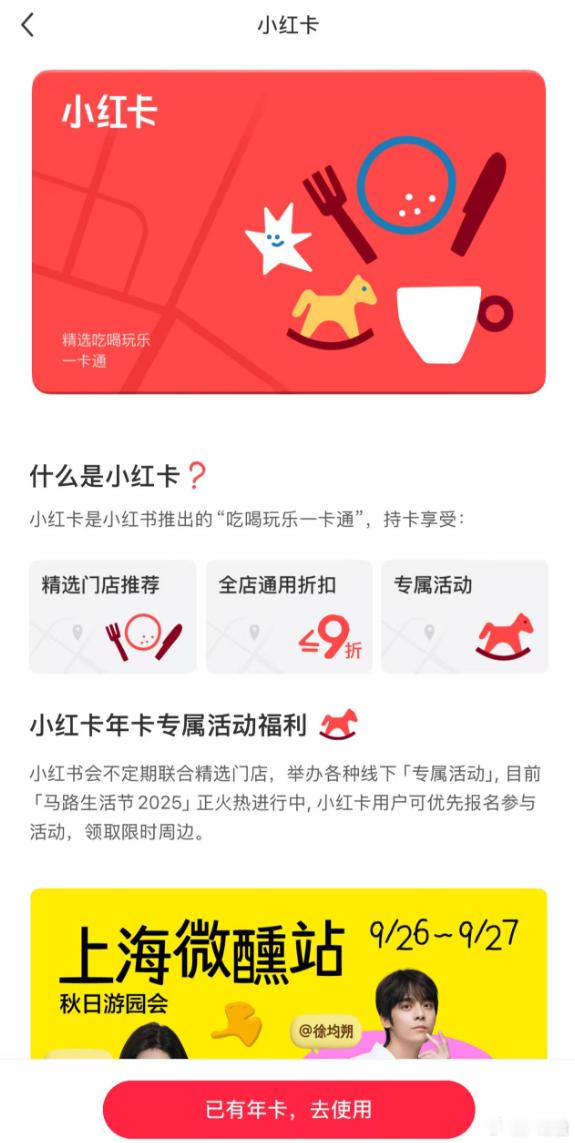 前两天去围观小红薯的线下活动,他们推出了一个小红卡,主打吃喝玩乐一卡通。