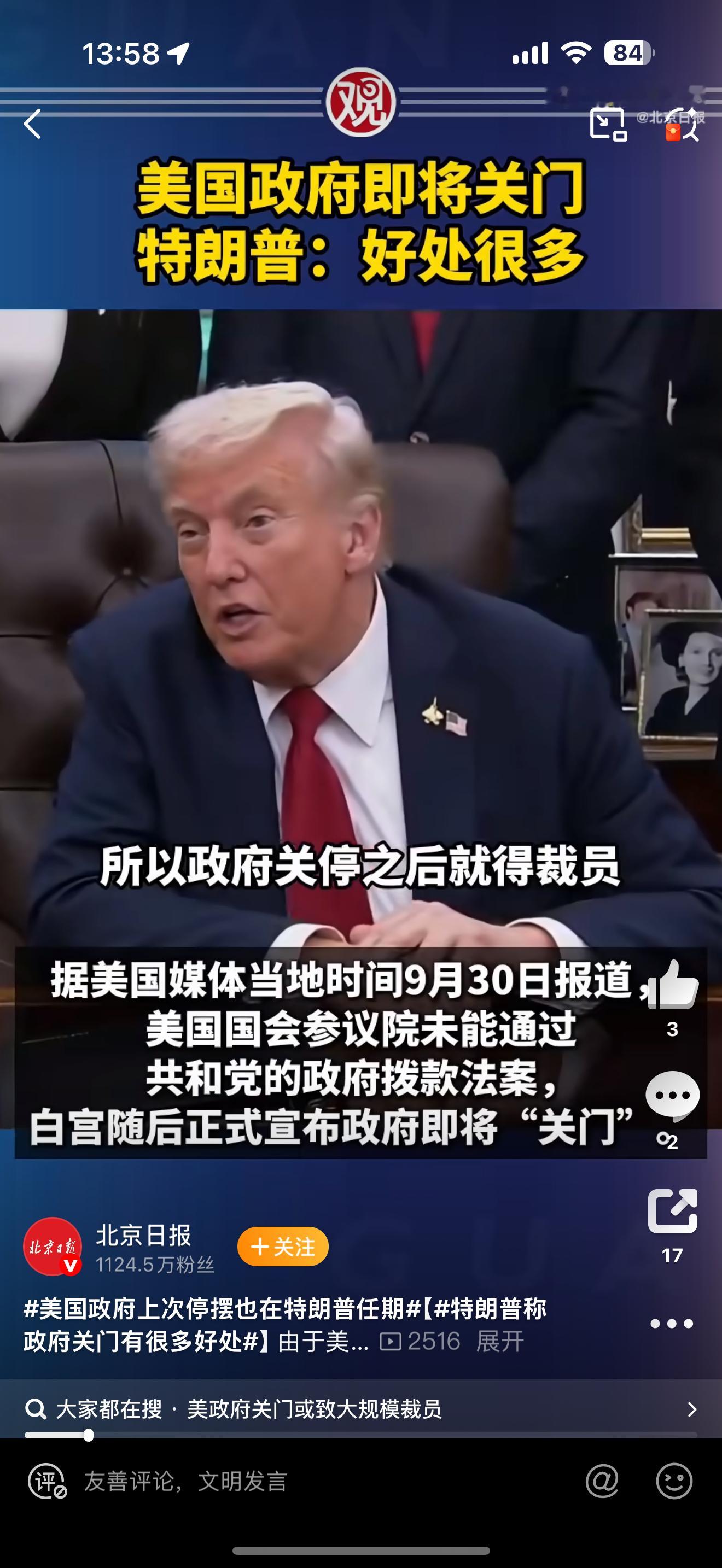 区别是中国放假是带薪的,美国是强制无薪停摆。