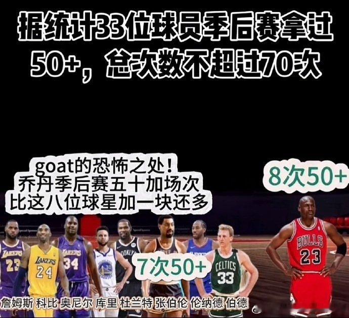 NBA球星季后赛单场50得分次数,乔丹就不是个地球人