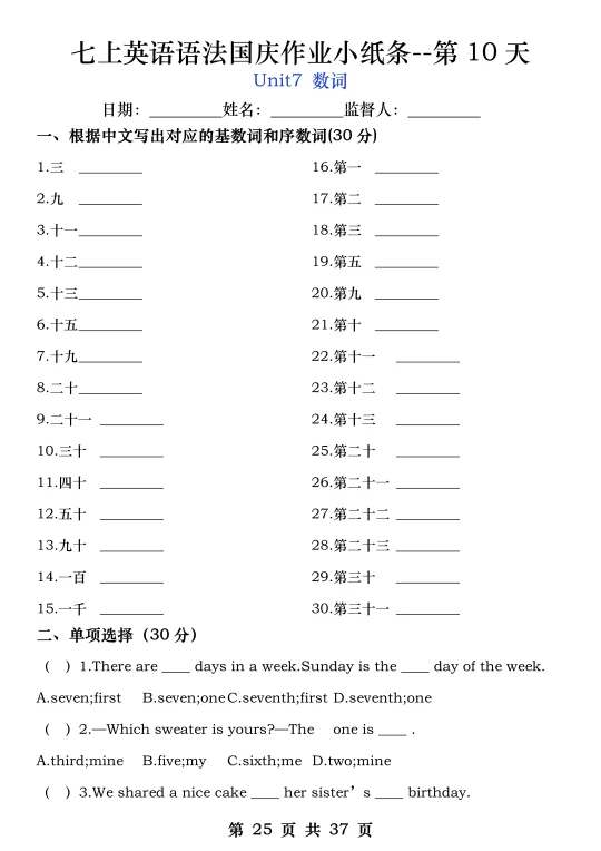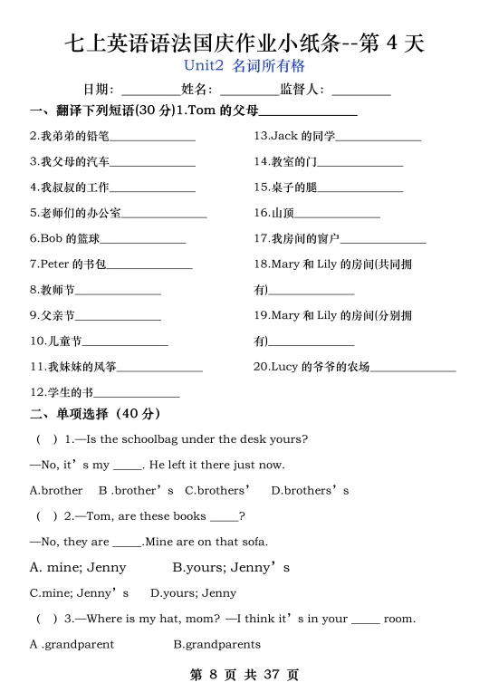 家长收藏孩子受益 知识点总结 初中英语笔记 七年级上册 七年级上册英语 七上英语 初一英语 单词打卡 默写小纸条每日一练月考国庆作业 早背晚默