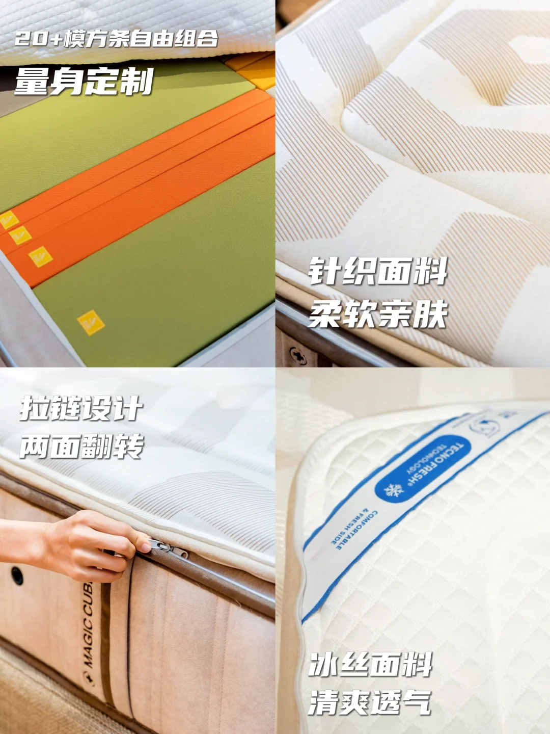 ✅尤其是MAGIC CUBE ADAPT,20+个模方条自由组合,像乐高🧸一样好玩!我躺上去瞬间感受到腰部和臀部的支撑力完全不同——腰部轻柔托举,臀部扎实承托!据说适合爱抱被子睡的人,太好玩了~✅TURN SUPPORT FIRM,左右分区设计,有多种睡感可选,满足差异化睡感需求,完全不会打扰同伴!