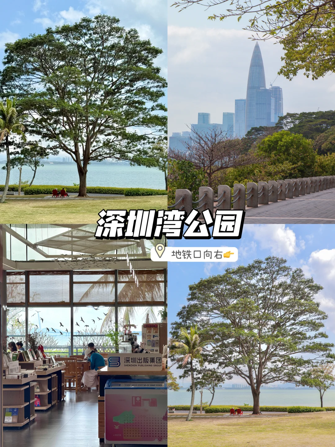 📍深圳湾公园:地铁“深圳湾公园”站D2口直达海边公园🏝️。地铁口往左有沙滩秋千游乐设施,往右是📍白鹭坡书吧(打卡“怦然心动的树”,约2.4km)、📍人才公园(打卡“春笋”,约5km),海边有骑行道,出地铁站就扫共享沿岸骑行。