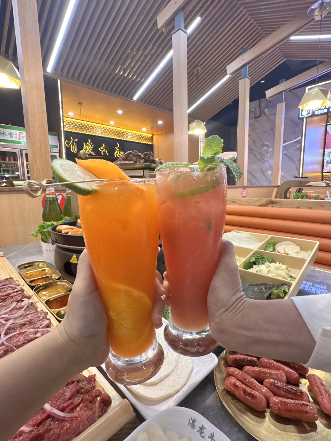 在宝安挖到这家宝藏烤肉店——湛龙超级烧,简直是肉食爱好者的天堂!🔥 进店就被那一米长的牛肉阵仗惊到了!十几种不同的肉经过碳烤过后会出现不一样的口感,有些牛肉嫩到入口即化,有些牛肉香到嘴里爆炸😋 他家的潮式烤肉风味很绝,每一口都能吃出食材的新鲜度。 店里还有很多配菜,可以解锁各种隐藏吃法,,让各种搭配玩出花!搭配芭乐茶和胡萝卜橙汁,解腻又清爽,这组合把我的胃拿捏得死死的~ 在深圳想吃正宗潮式烤肉的宝子,这家真的可以冲!排队再久都值得!