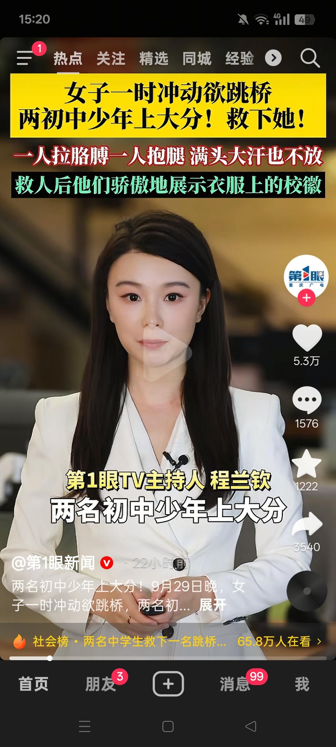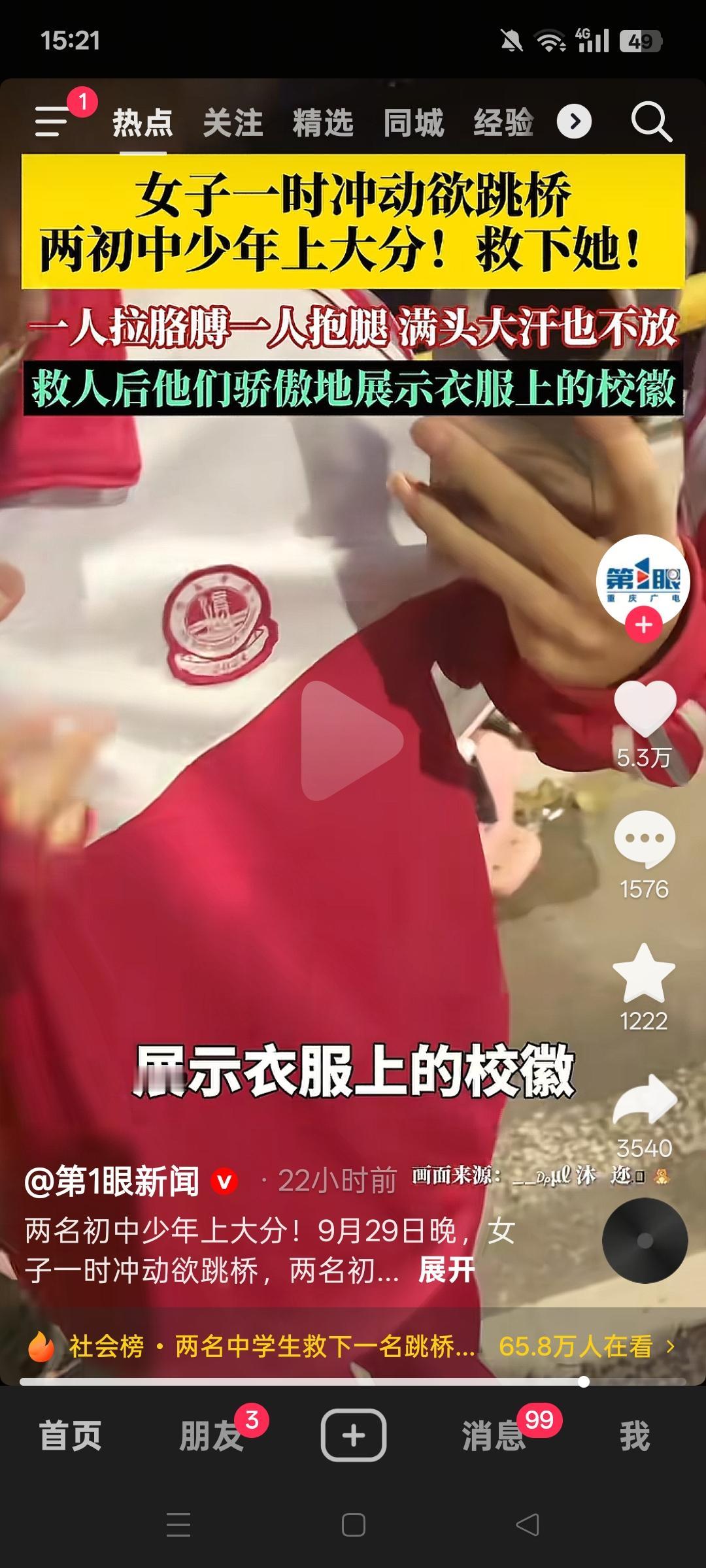 最近看到两则少年救人的新闻,真的太让人感动了。广东阳江的17岁高三学生罗家祺,和同学钓鱼时听到六十多岁婆婆溺水呼救。他不会游泳却没丝毫犹豫就下水,同学们用竹竿救上婆婆,他却滑入河底大沟,最终失去了年轻生命。他妈妈悲痛讲述,他生性善良,兜里还有一个月前买的新手机。当地政府为他颁发“见义勇为”荣誉证书。 还有河南的张明,也是一名中学生,在两个小女孩落水时,凭借出色游泳技能和冷静判断将她们救上岸。他说只是做了该做的事。这些勇敢少年用行动诠释了善良与担当,值得我们点赞和学习!少年救人 学生救人事迹