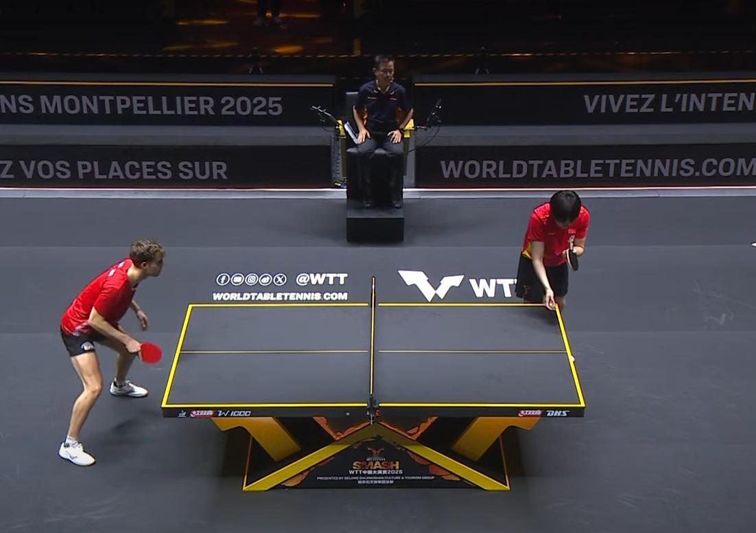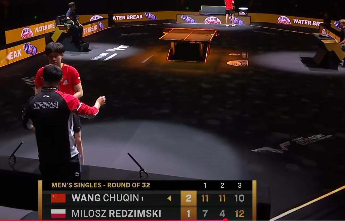 坏了!王楚钦这是被针对了! 今天裁判直接扣分了! 我又返回来看了一遍, 是这个裁判直接扣的分! 大头申请了鹰眼, 结果还是维持了原判。 我仔细看了一下, 其实就是一点点遮挡, 根据动线是能判断出球的规矩, 这个裁判还是扣了分, 说明对大头太严格了。 好在决胜局的关键球, 大头发挥出色。 11:8拿下