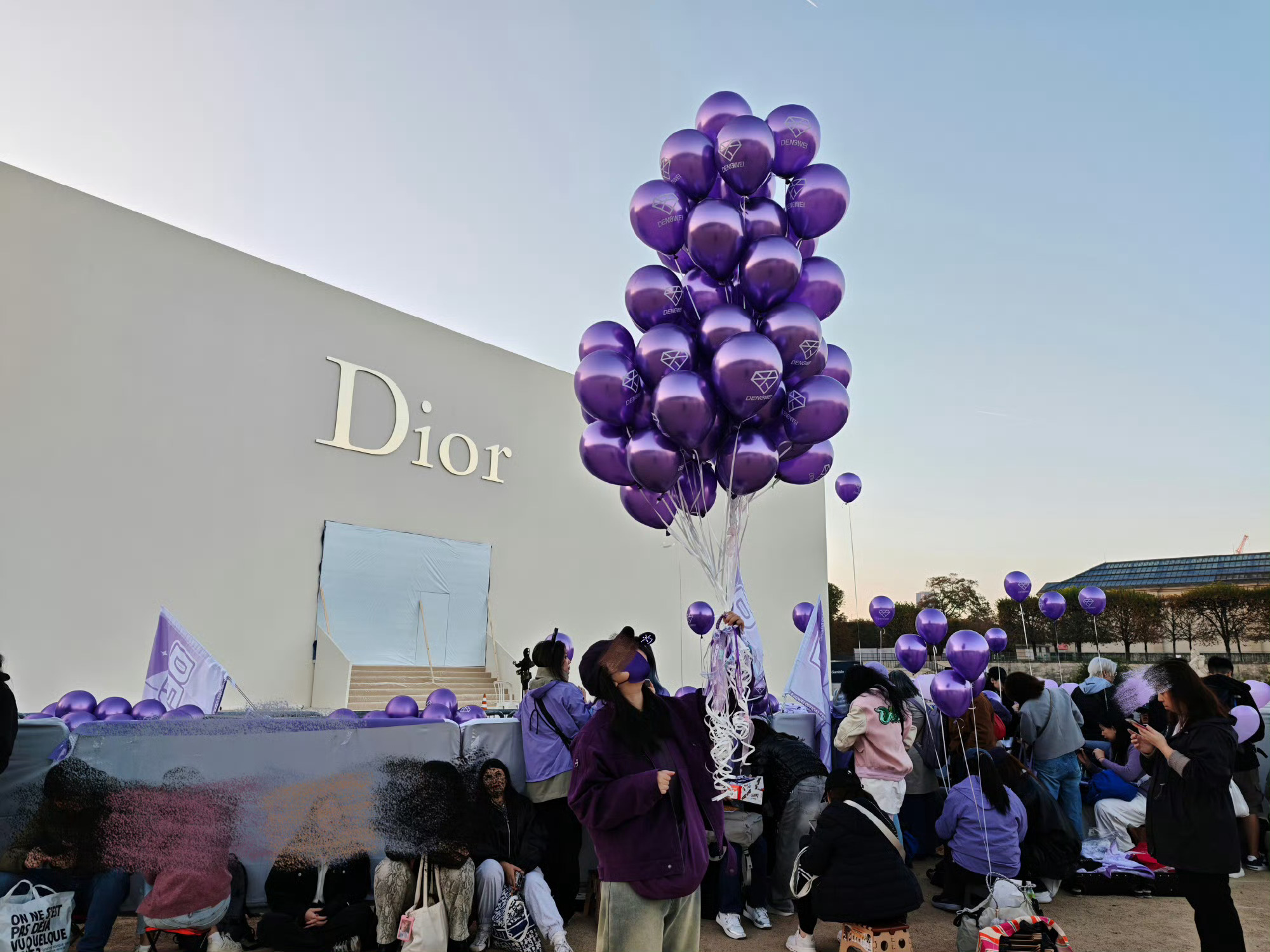 紫色气球升空、栏杆横幅就位,秀前氛围渐浓,点亮巴黎大秀,燥候高光登场[哇]一起用紫色点亮巴黎时装周💜