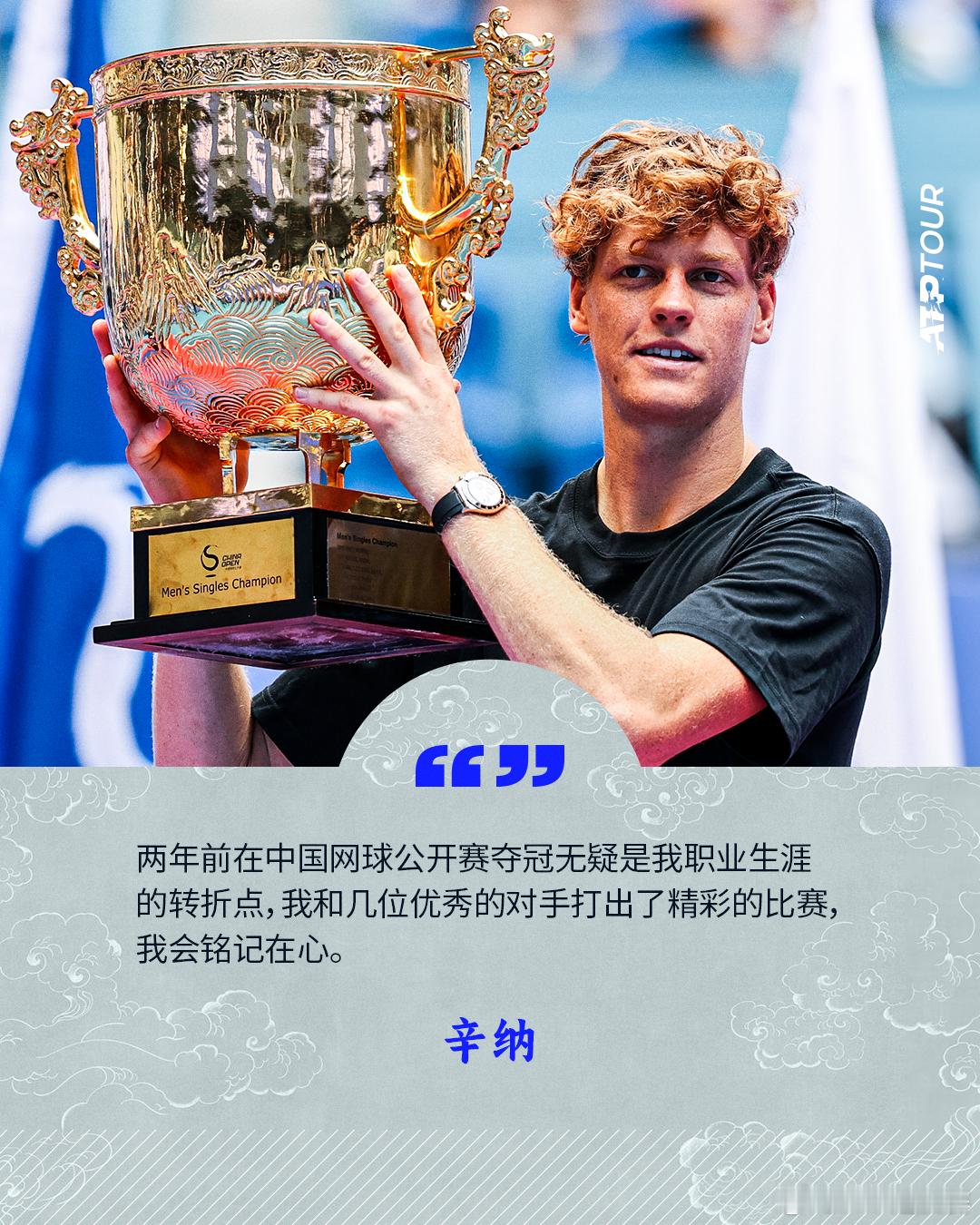 冠军发布会上,辛纳谈到对于自己特殊的意义:“中国的观众对我来说一直很特别,几年前我来的时候就是如此,当你多次赢得这项赛事的冠军时,这里就成为非常有意义的地方。两年前在夺冠无疑是我职业生涯的转折点,我和几位优秀的对手打出了精彩的比赛,我会铭记在心。”