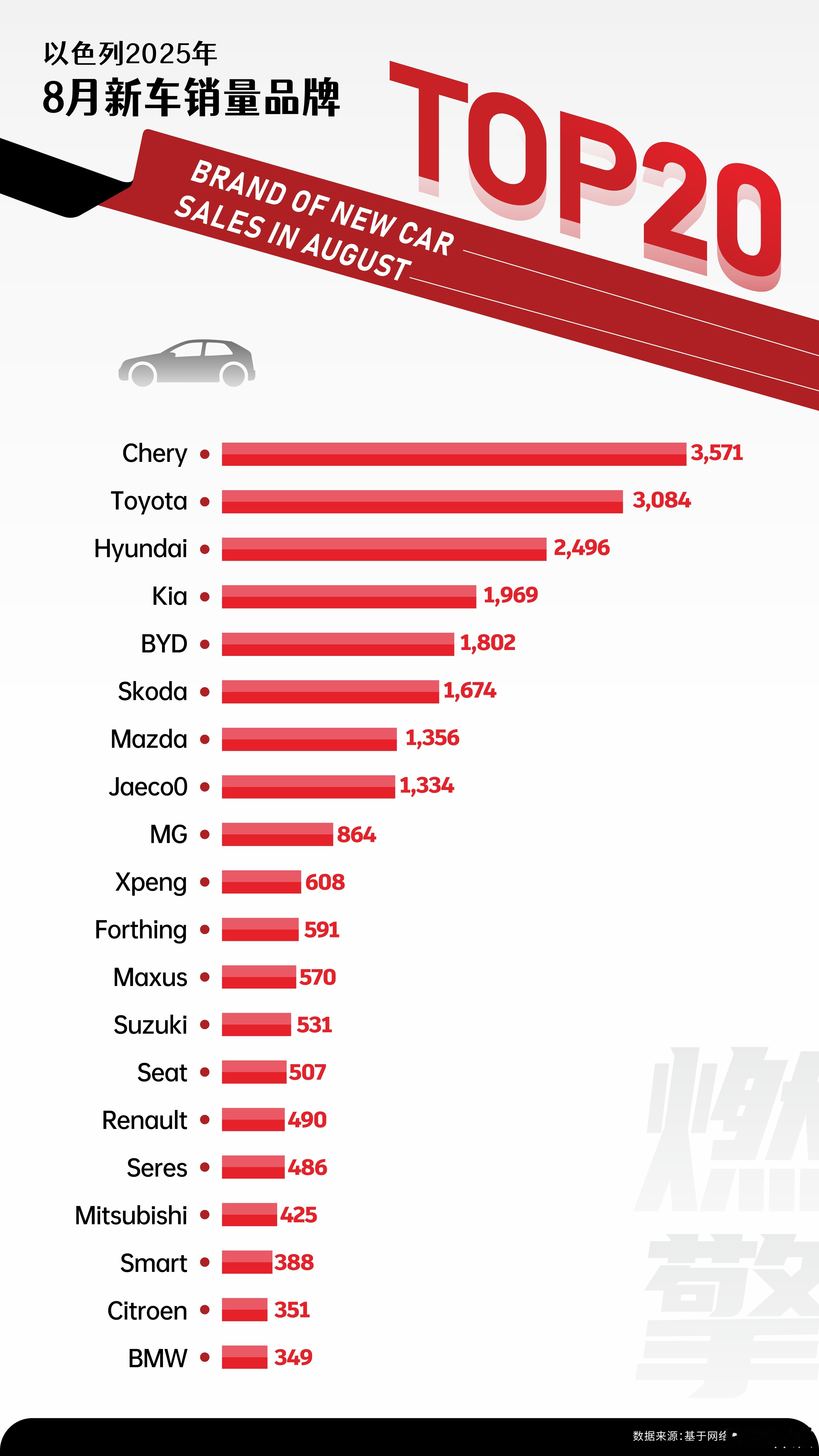 2. 电动化转型加速:比亚迪、小鹏等新能源品牌的热销,显示以色列市场对电动车的接受度持续提升。