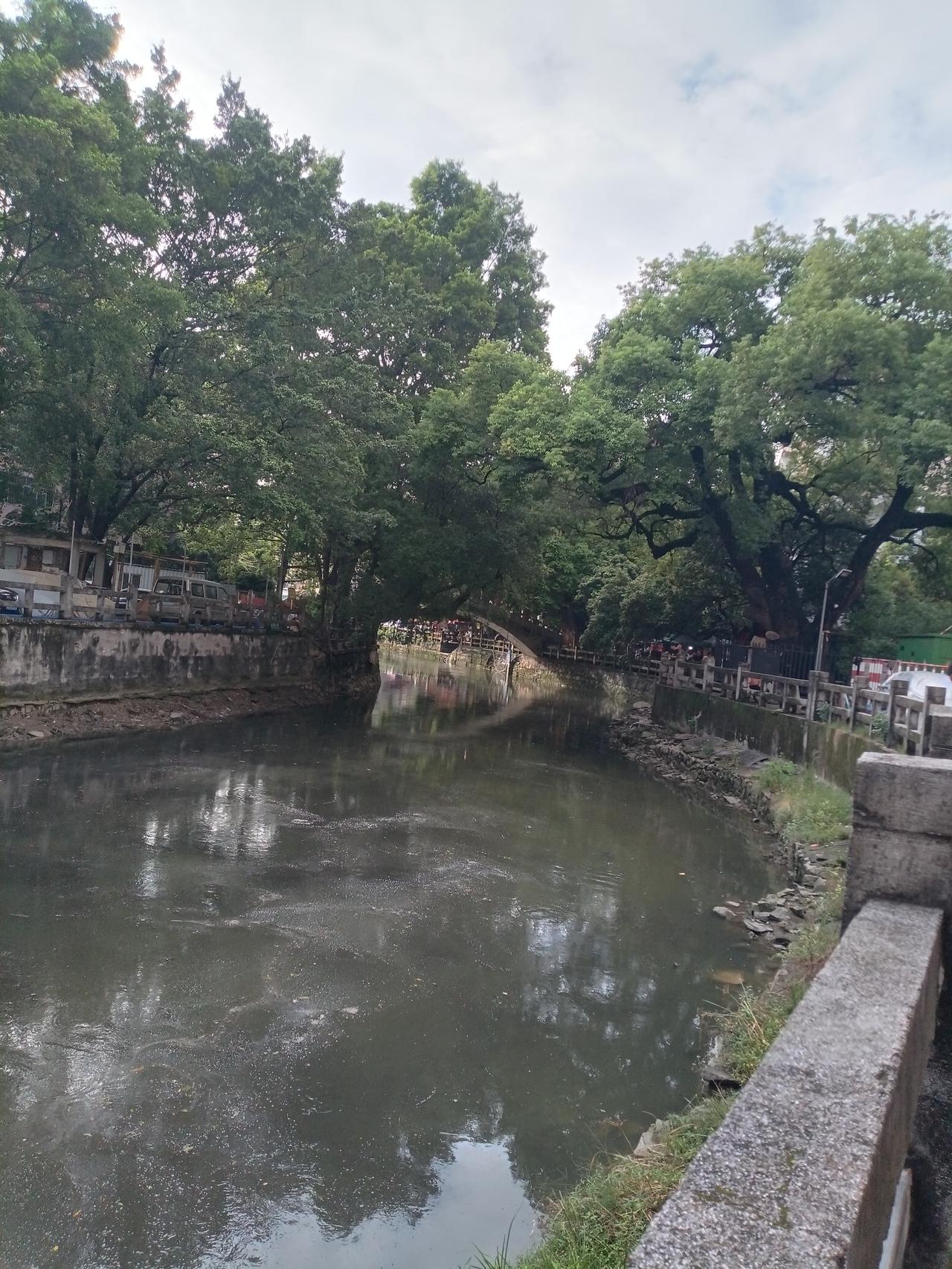 广州海珠区上涌村河边,河边一个上涌公园,附近都种植了好多棵百年大树,是许多人乘凉