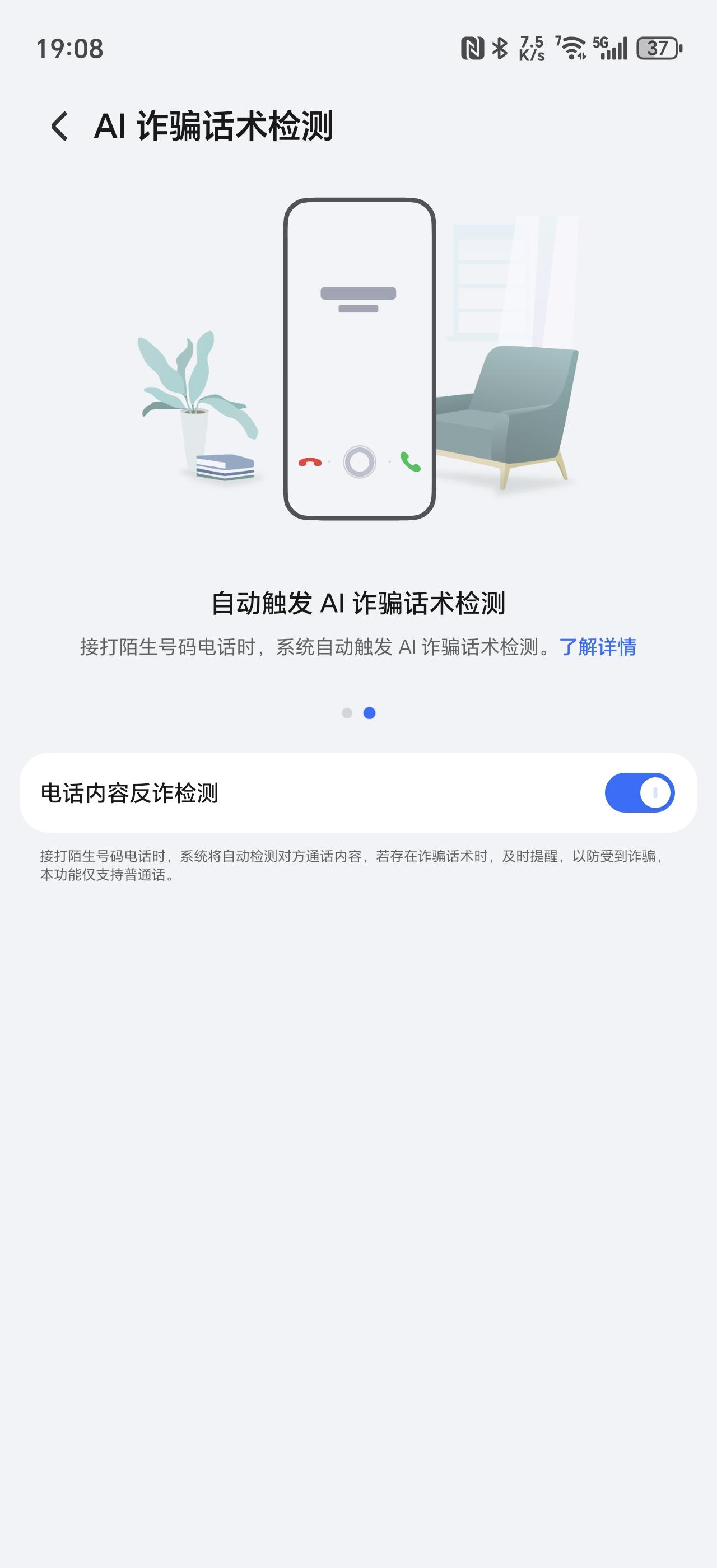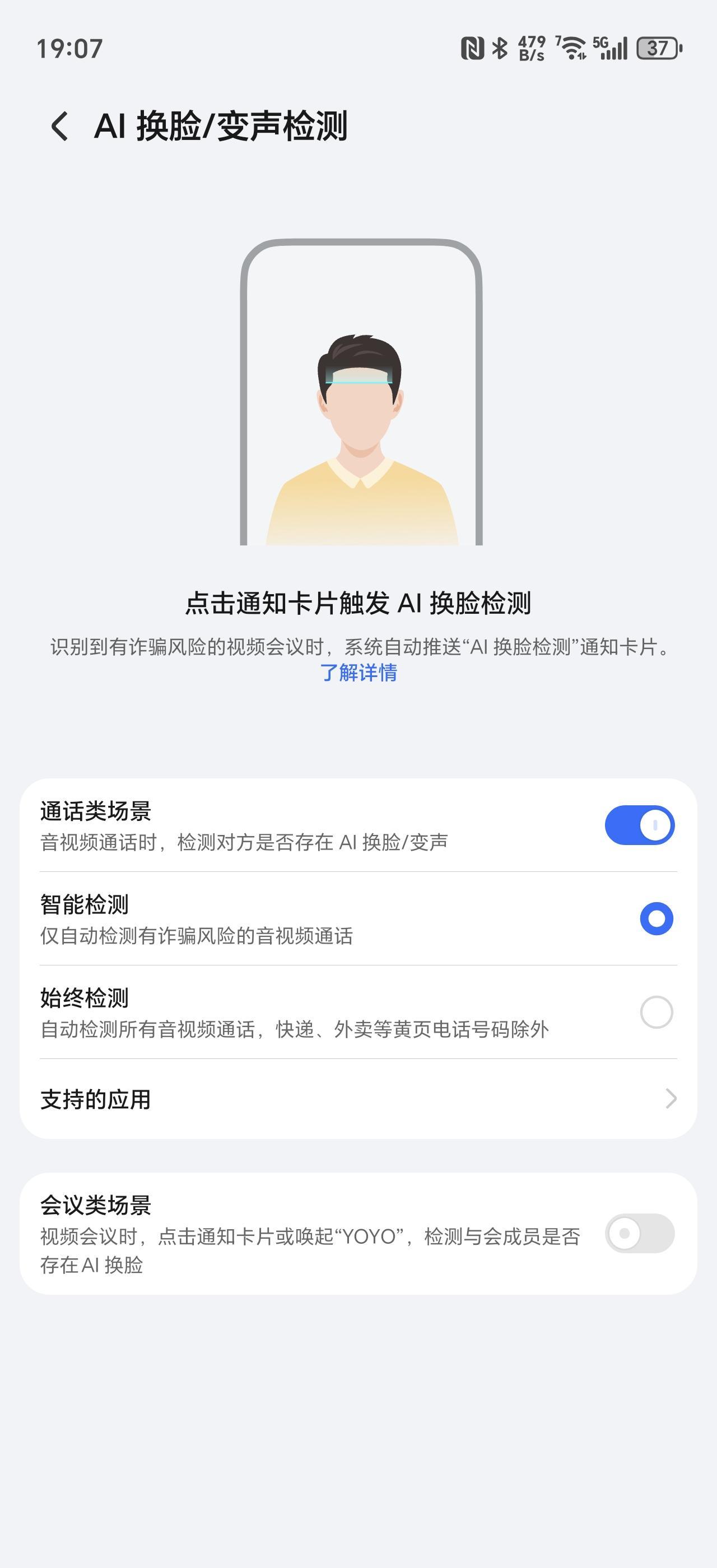 荣耀反诈防护功能做的挺好的呀,居然还有AI换脸/变声检测、AI诈骗话术检测,希望