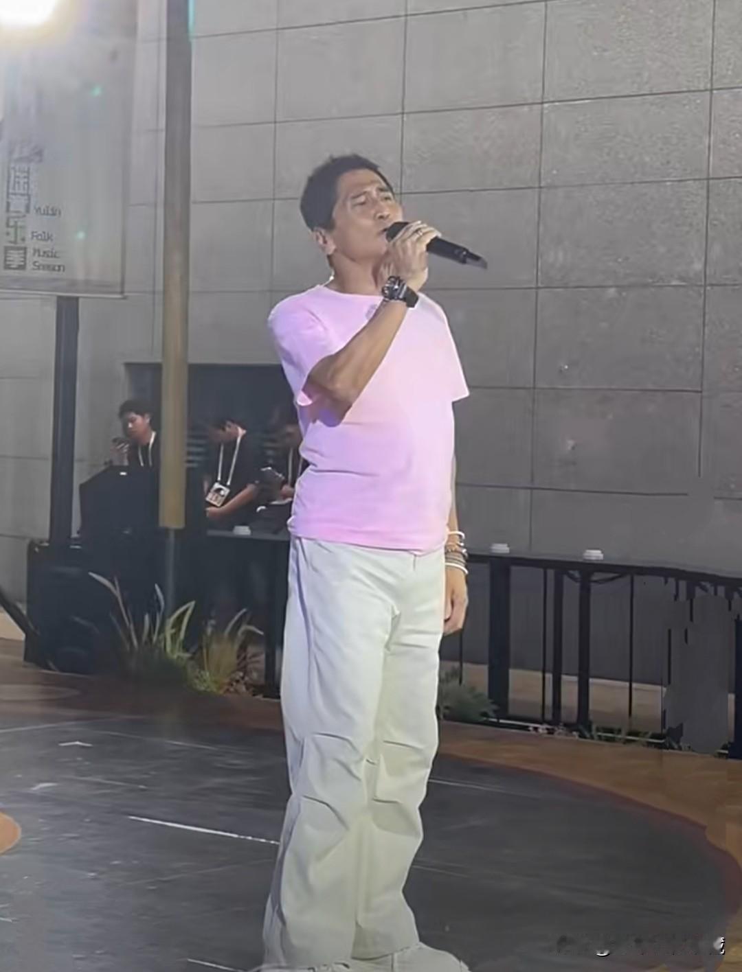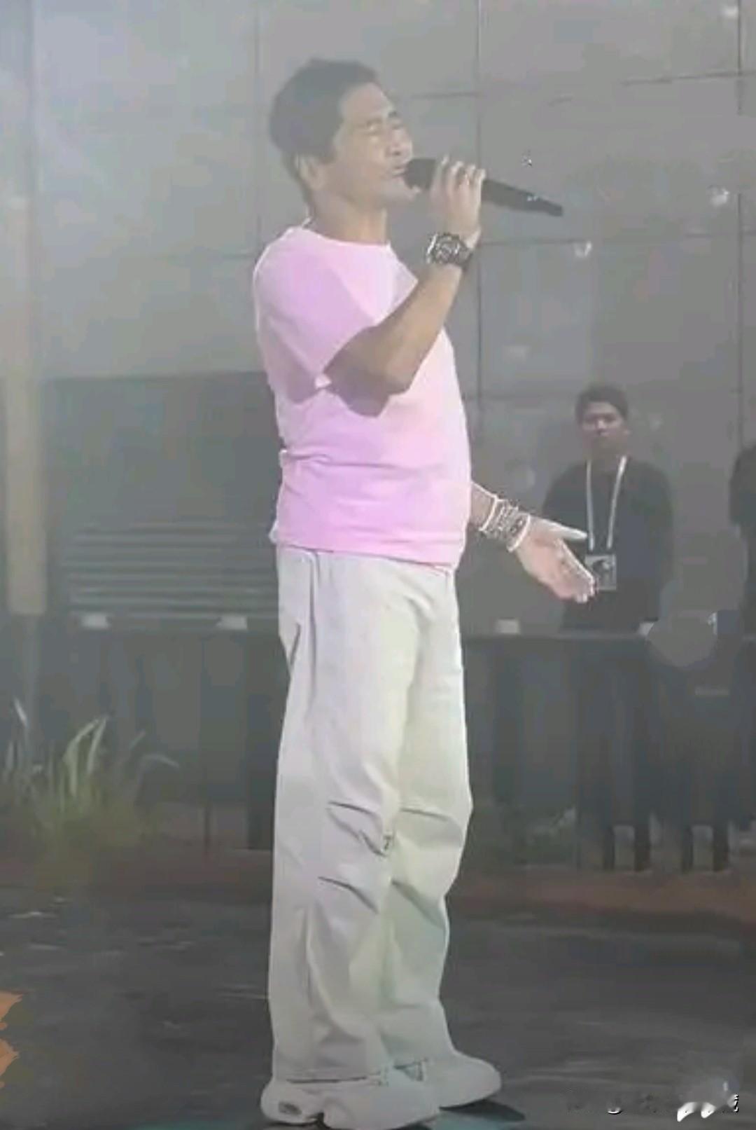 昔日风光无限的情歌王子齐秦如今也只能在街头路演,真的是英雄末路,可惜!近日,成都玉林街头,身材臃肿的情歌王子齐秦一身休闲装在表演,大肚腩隆起,在紧身的粉色圆领T恤衫下格外显眼,白色休闲裤搭配白色旅游鞋到是十分显得有活力,只是这皮肤黝黑,满脸褶子,头发杂乱,小哥不复当年风采,想当初的小哥齐秦,一头长波浪卷发披肩,戴着黑色墨镜,怀抱吉他,真的帅酷有型,多少少男少女心中的模仿偶像,如今的歌坛王子也只能在路演舞台歌唱,感觉都没有大衣哥朱之文受欢迎!太可惜了!