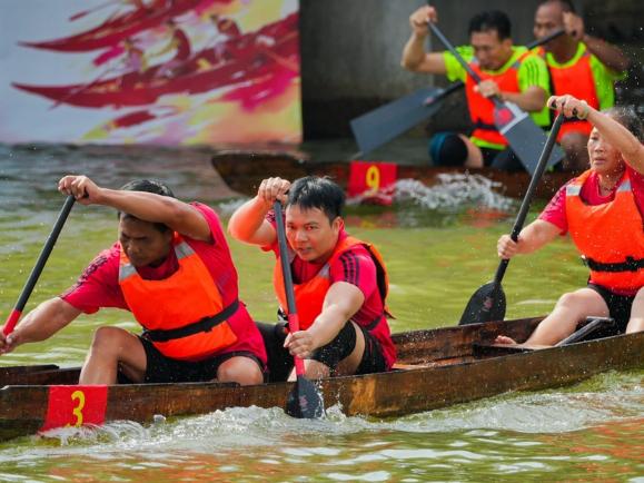 作为横沥镇“CBD里的民俗盛会”年度文化IP的一次成功实践,本次赛事集结多元参赛阵容——共有21支来自南沙及周边城市的专业龙舟队、23支队伍由横沥镇辖区内企事业单位、村(社区)组成的三人农艇队同场竞技。鼓点穿透灵山岛尖的现代建筑群,银龙般的龙舟与灵活的农艇在清澈河面上穿梭竞渡,传统民俗的鲜活张力与未来城市的蓬勃生机形成震撼视觉反差,现场观众的欢呼声与桨声、鼓声交织,共同完成了这场“古今交融”的沉浸式观赛体验。