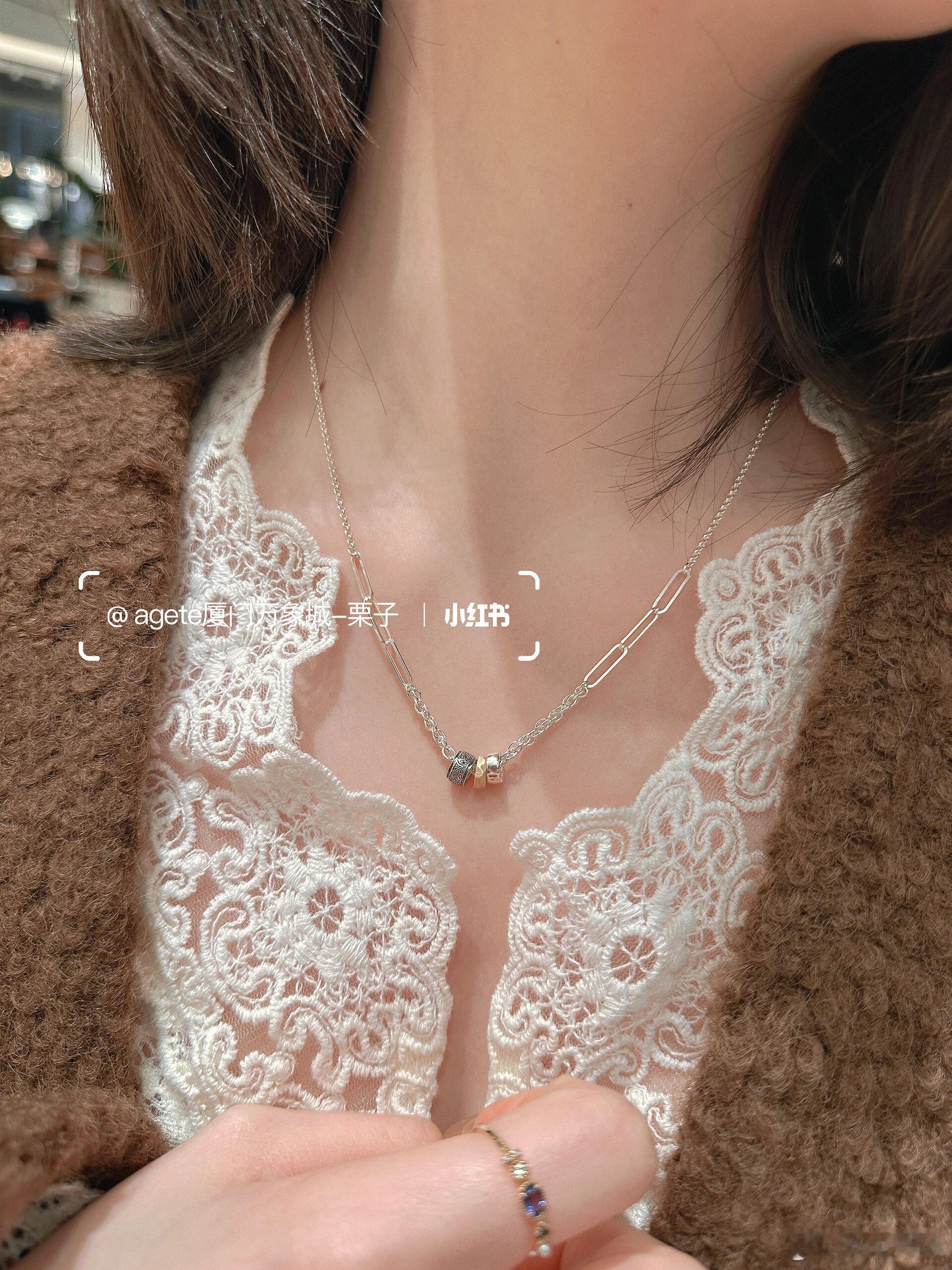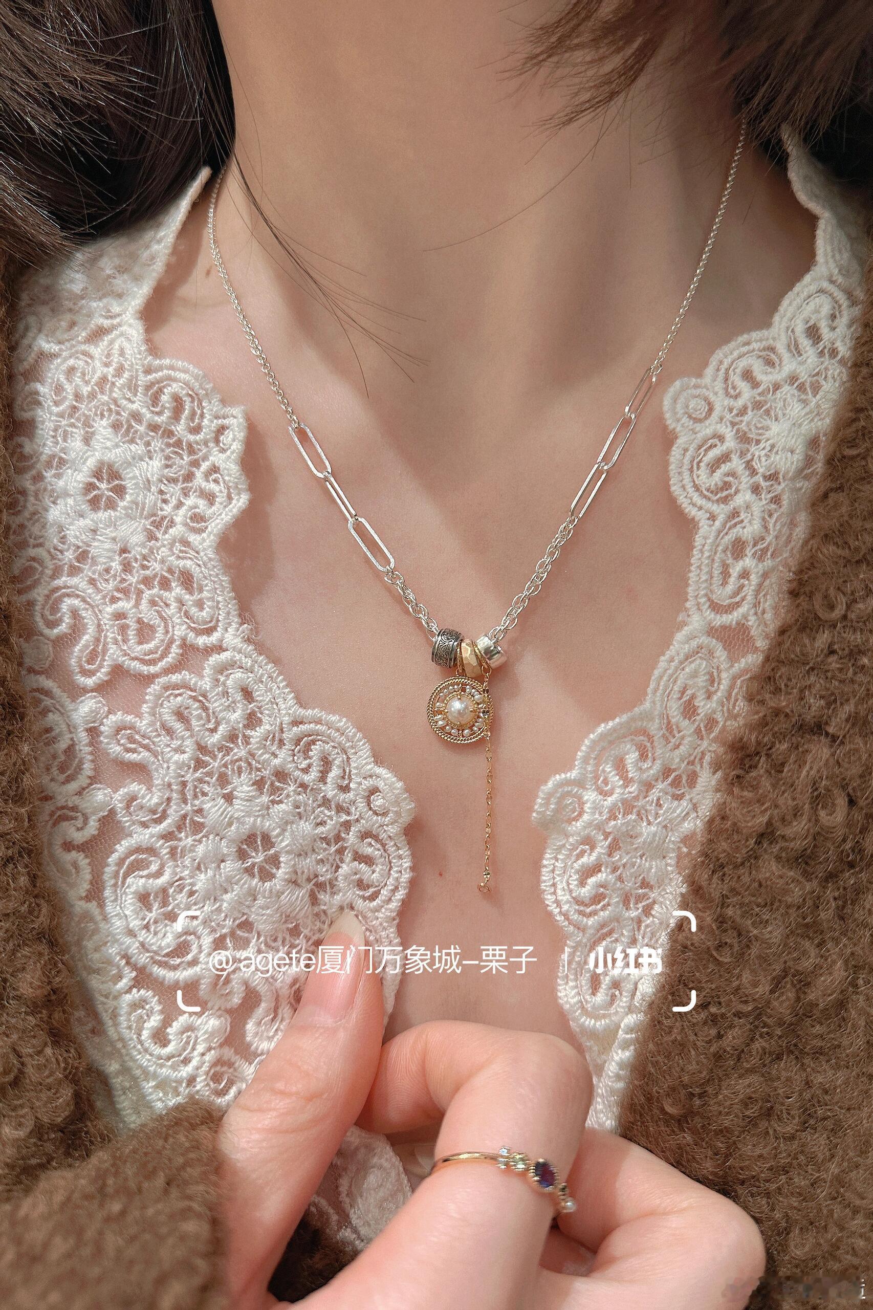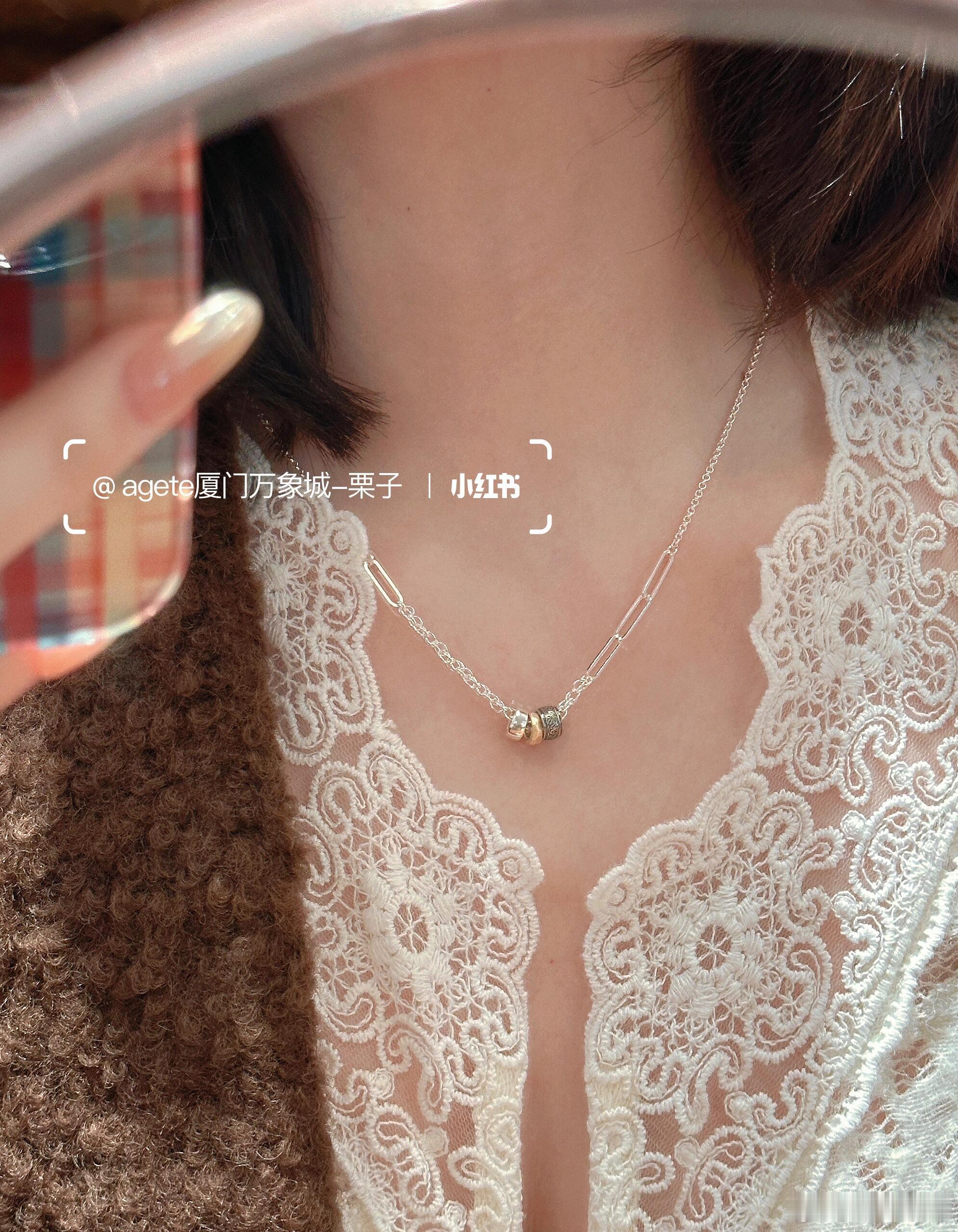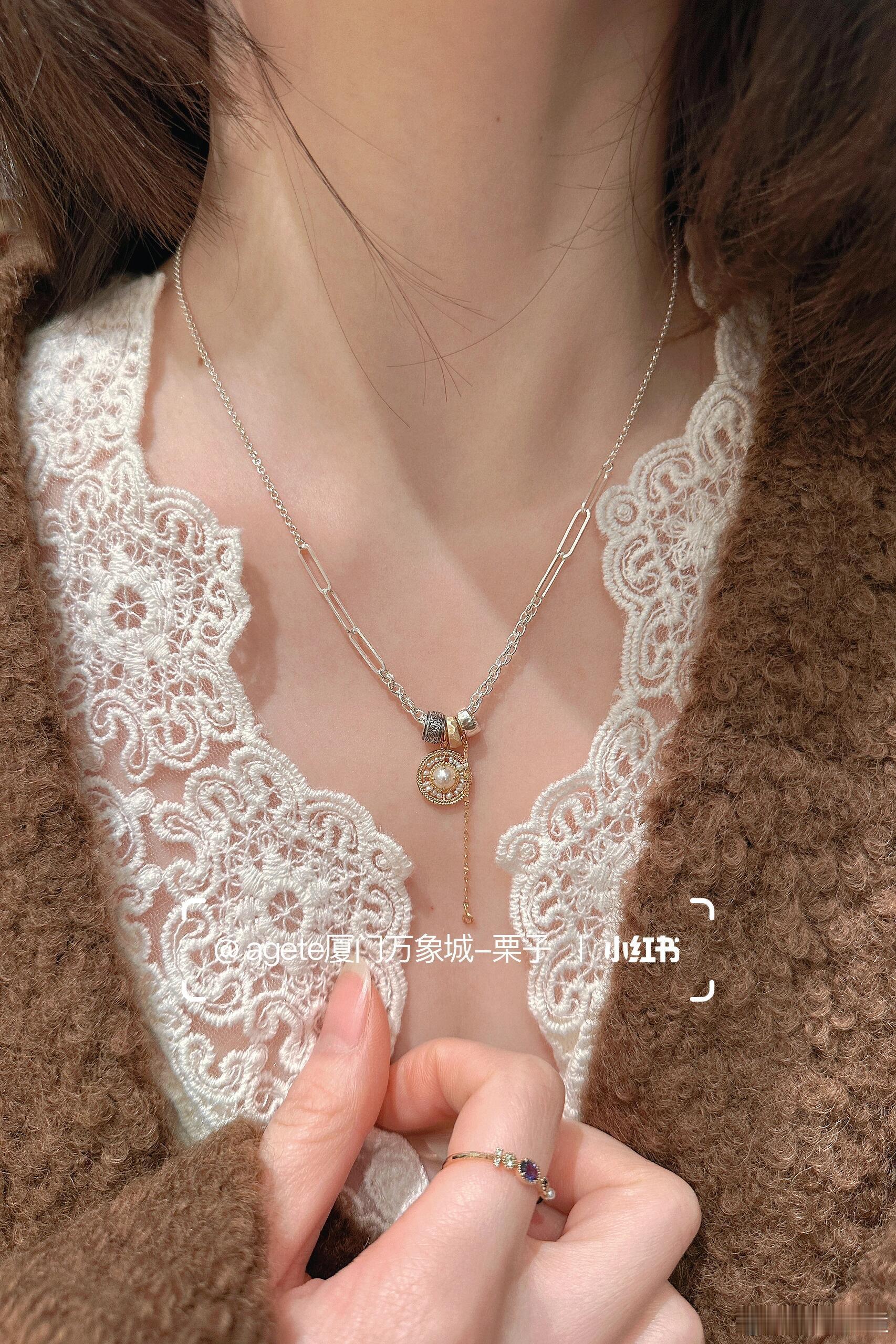 它巧妙点缀于米白色蕾丝上衣的V领间,与外套的温暖棕色毛绒质感相映成趣,为整体温柔雅致的穿搭注入一丝低调奢华的点睛之笔。设计精致而不繁复,完美诠释了agete品牌融合复古与时尚的日常佩戴哲学,既能凸显颈间风情,又不失整体搭配的和谐感。这配饰有点人设在身上时尚配饰